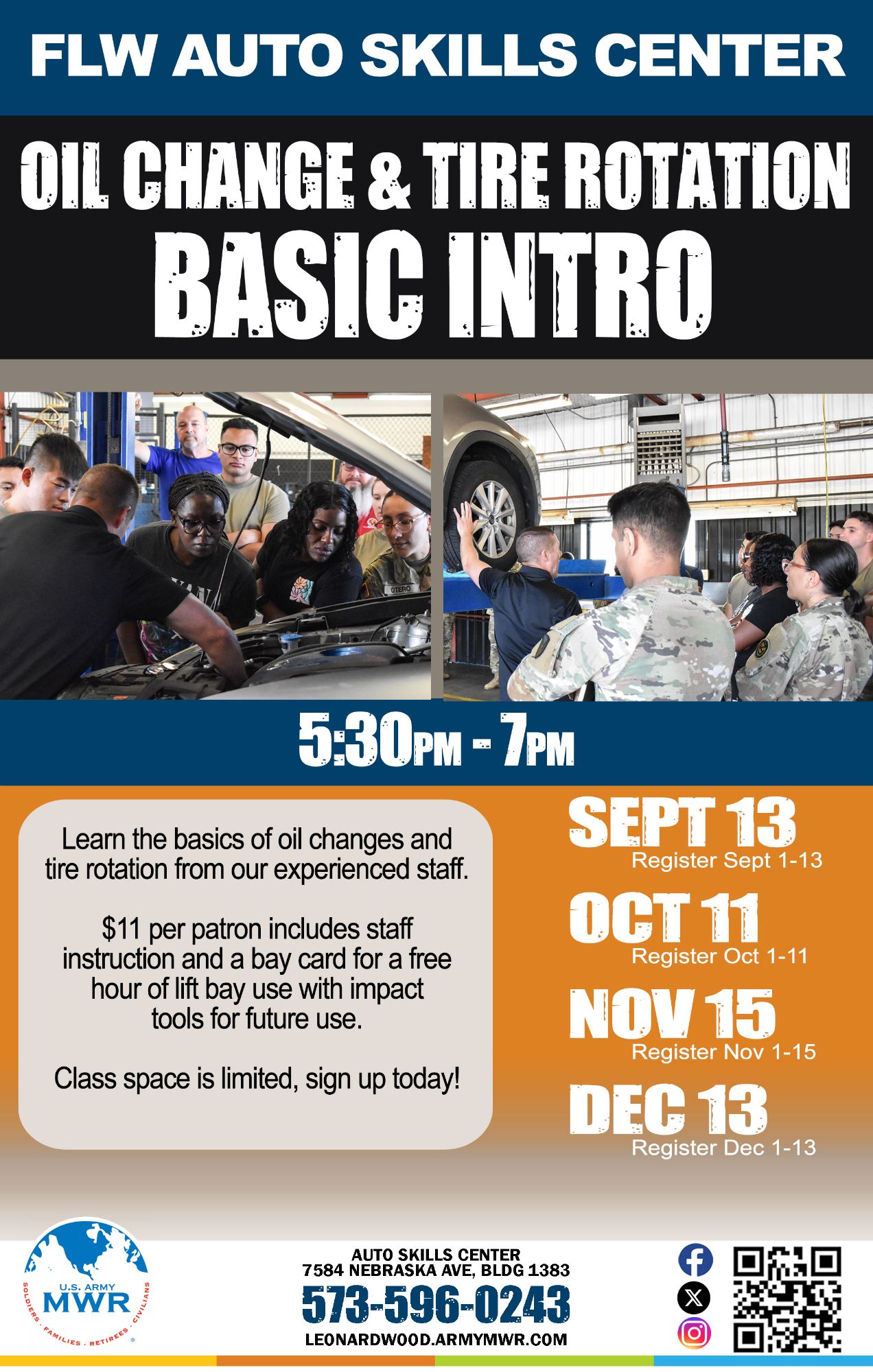 Register Now!Learn the basics of oil changes and tire rotations from our experienced staff at Auto Skills Center!
