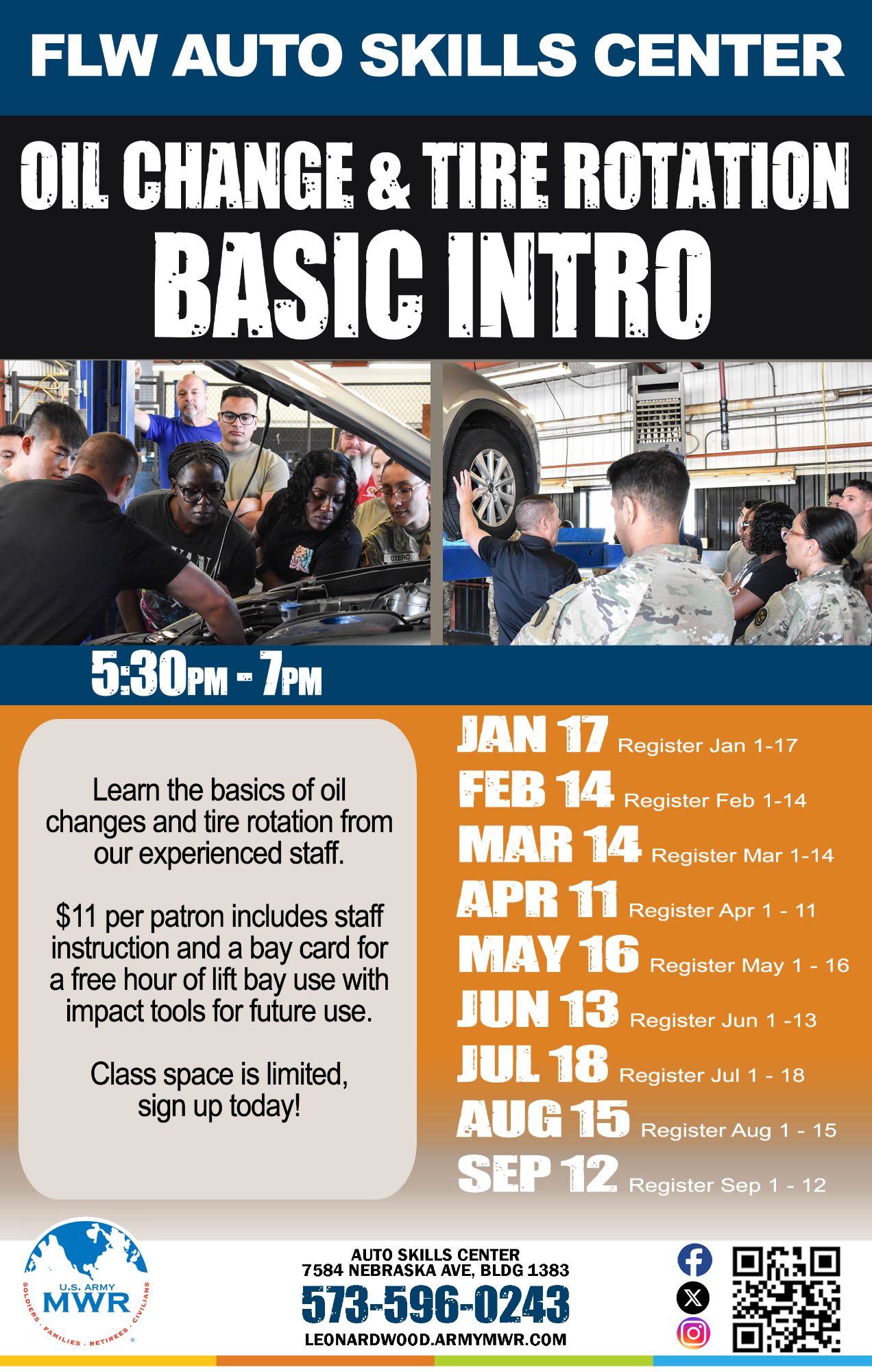 Register Now!Learn the basics of oil changes and tire rotations from our experienced staff at Auto Skills Center!