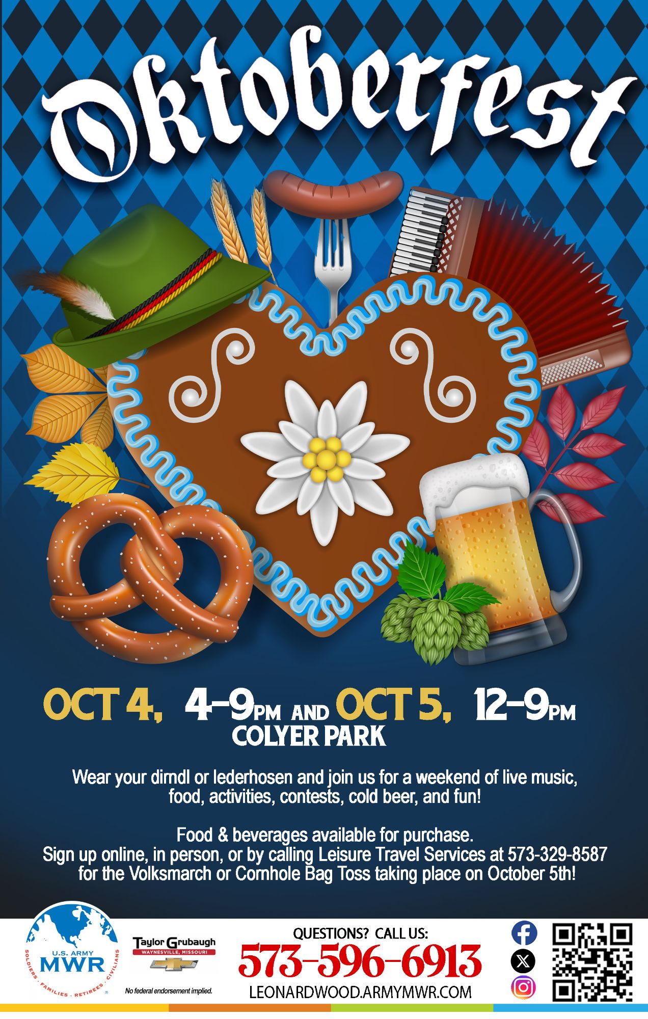 Also join us on 5 October for the Volksmarch and Cornhole Bag Toss! Registration can be done online, at Leisure Travel Services, or by calling 573-329-8587.