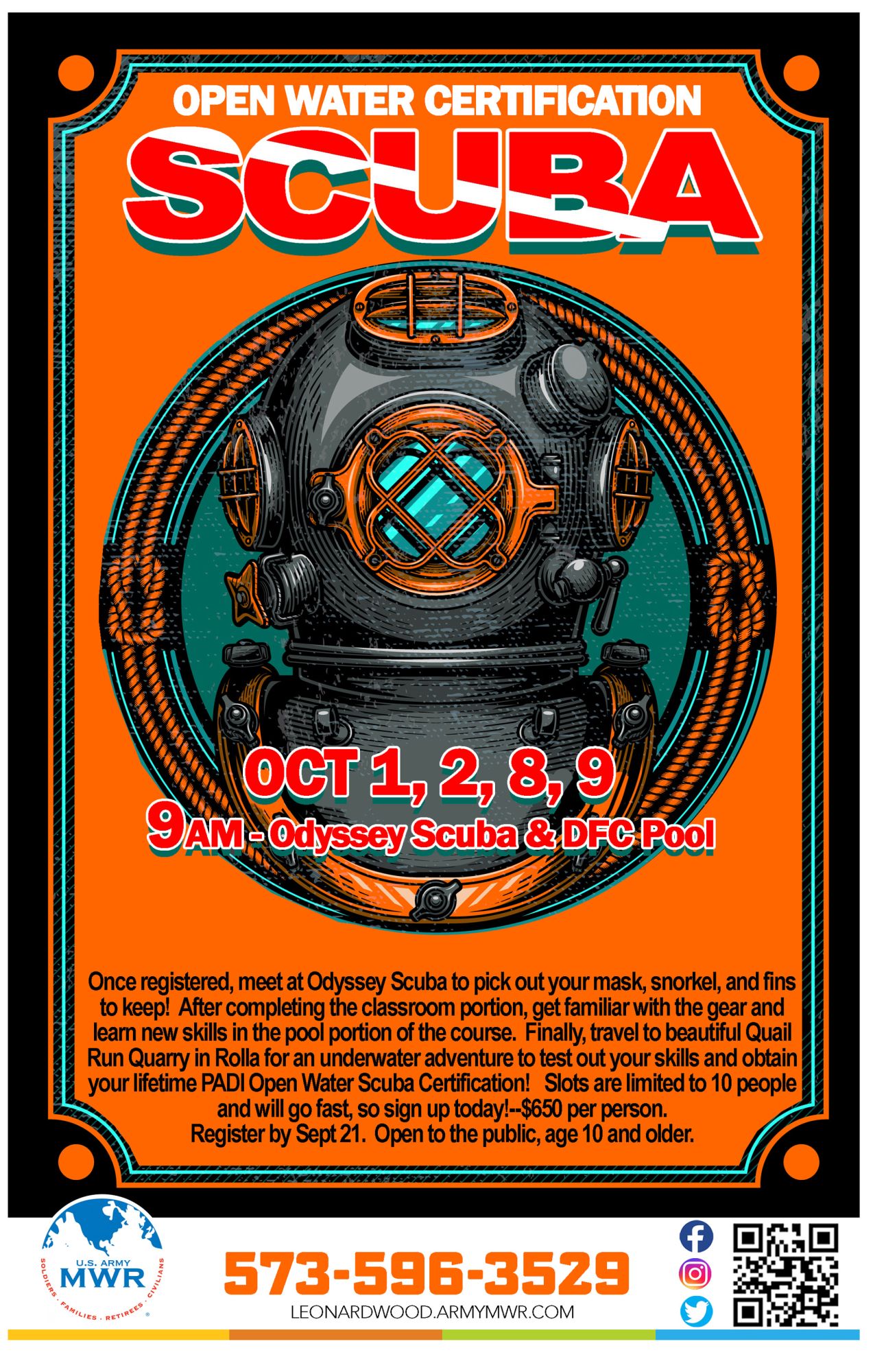 Join MWR and Odyssey Scuba for Open Water Scuba Certification!