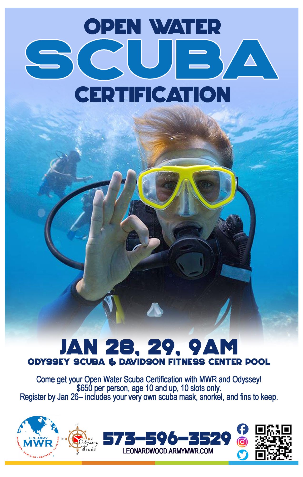 Come get your Open Water Scuba Certification with MWR & Odyssey Scuba!