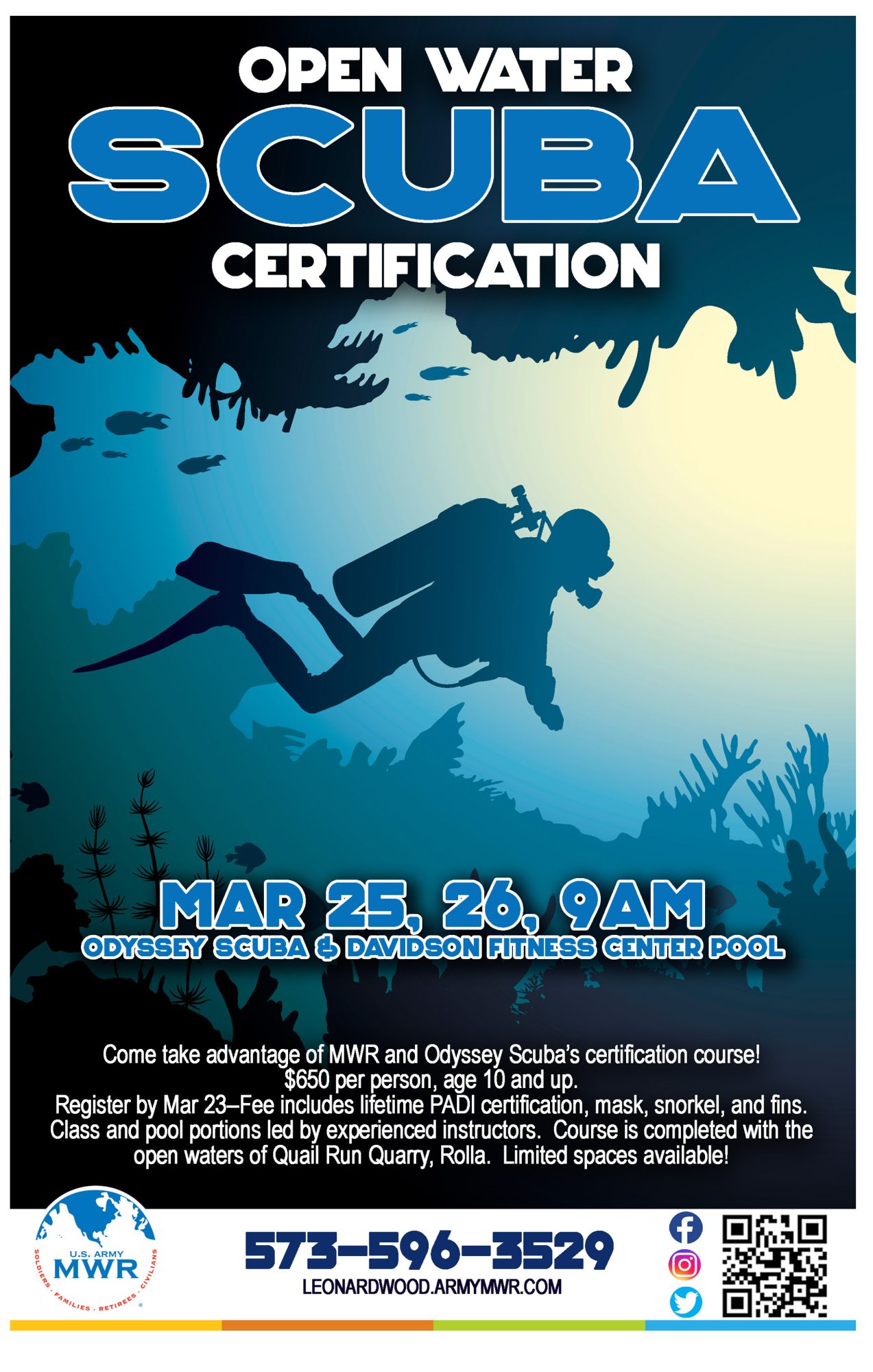 Join MWR & Odyssey Scuba to earn your Open Water Scuba Certification on 25 & 26 March!
