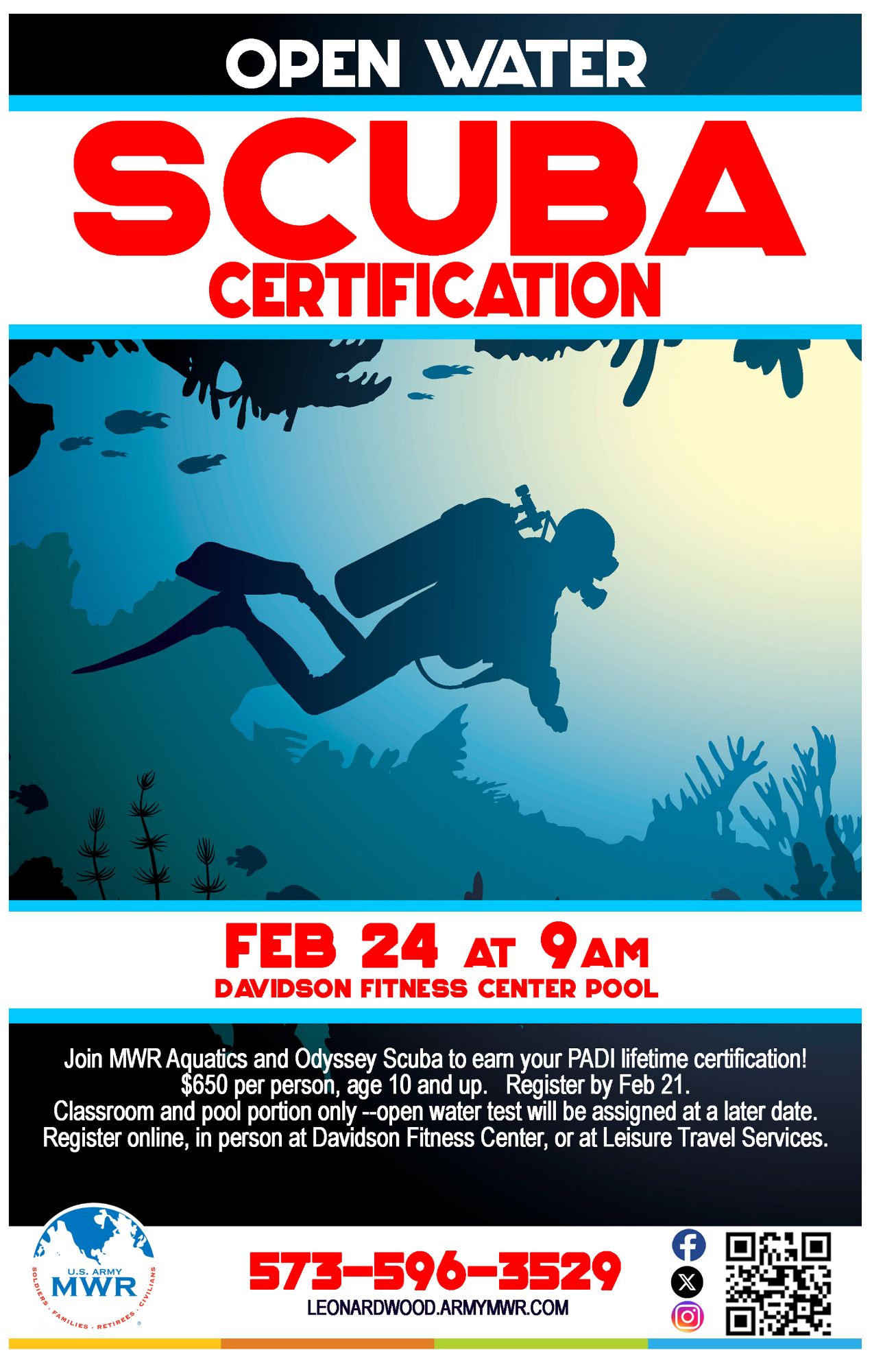 Join MWR Aquatics and Odyssey Scuba to earn your PADI lifetime certification!