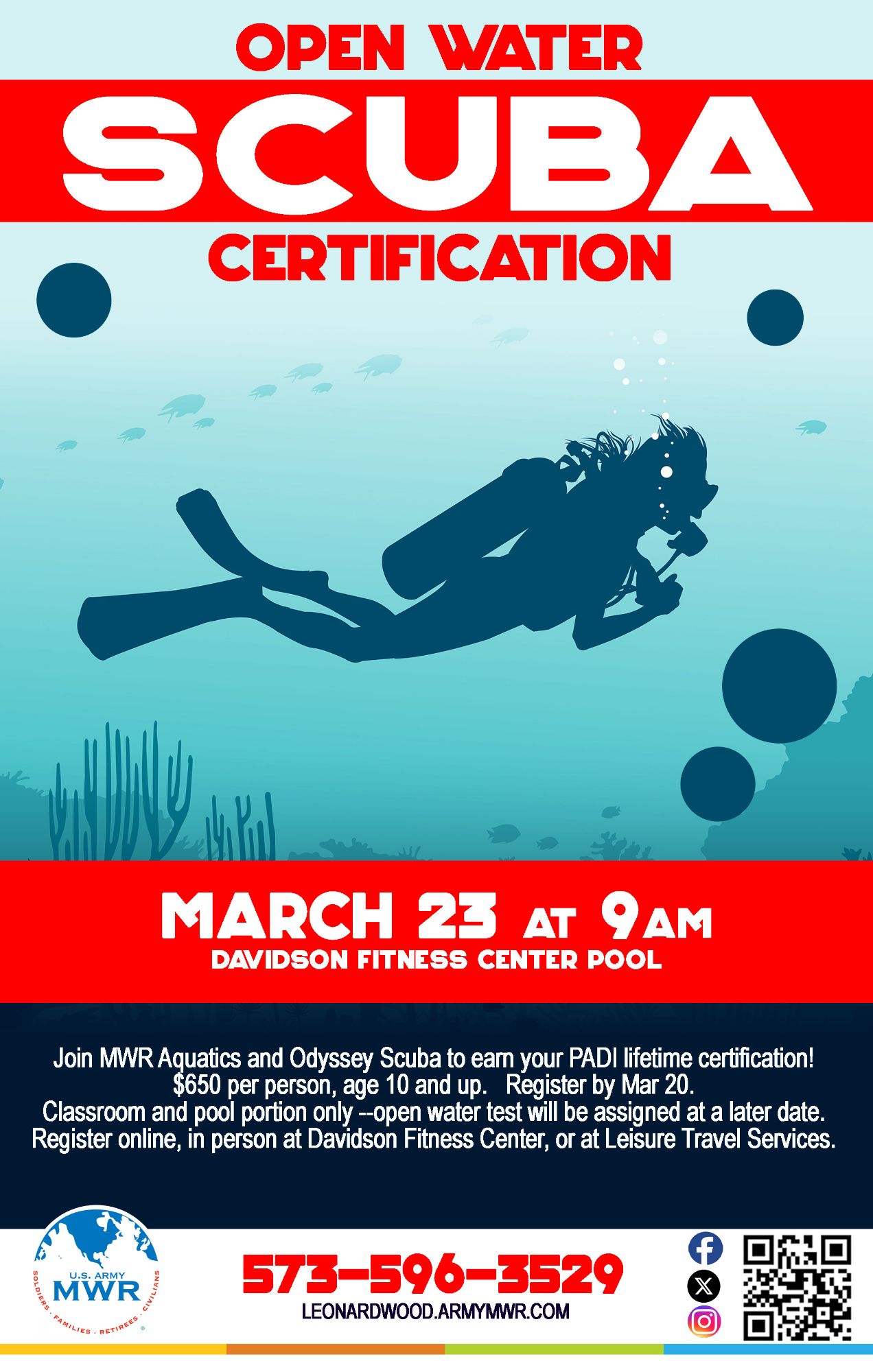 Join MWR Aquatics and Odyssey Scuba to earn your PADI lifetime certification!