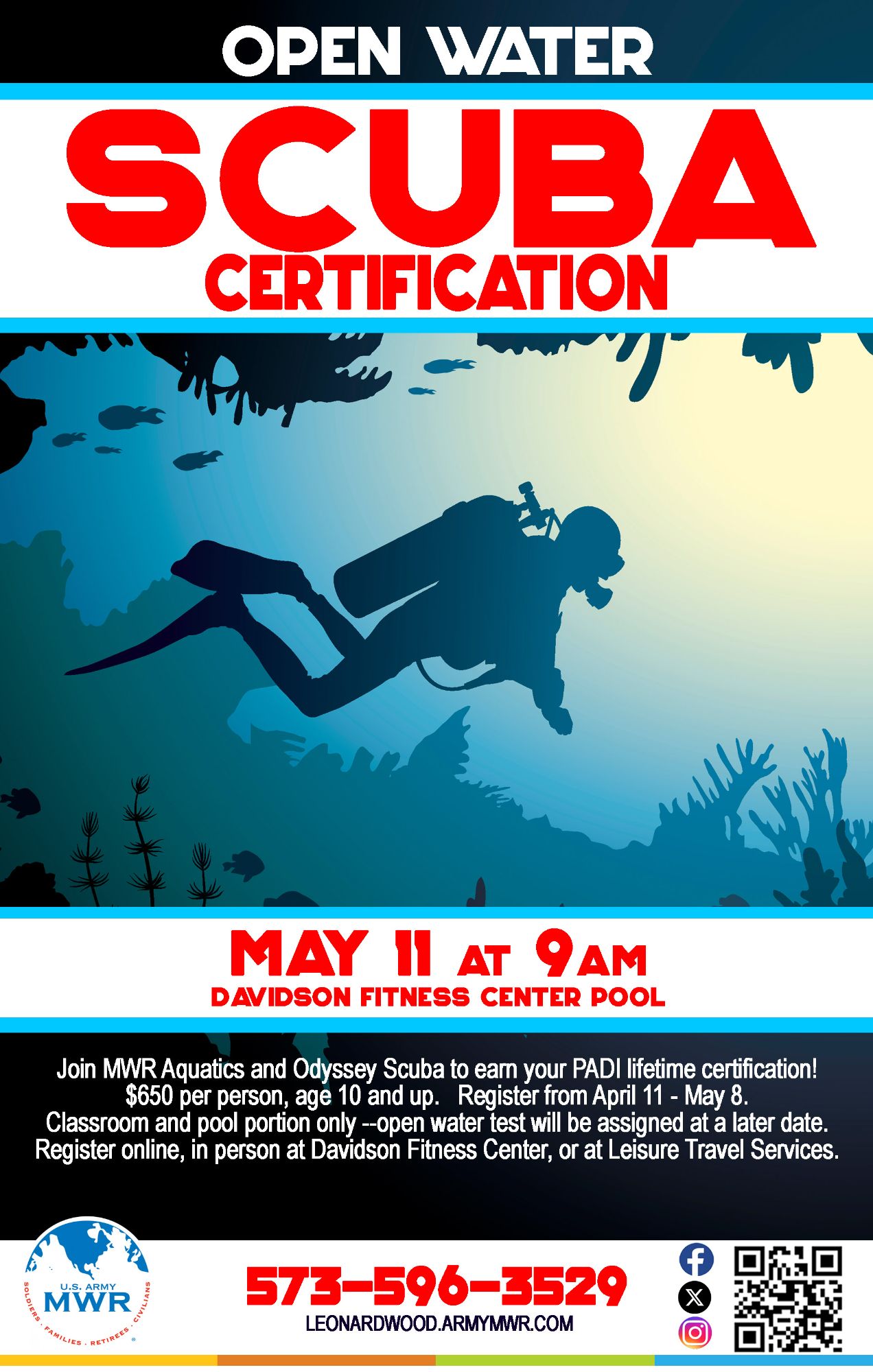 Join MWR Aquatics and Odyssey Scuba to earn your PADI lifetime certification!