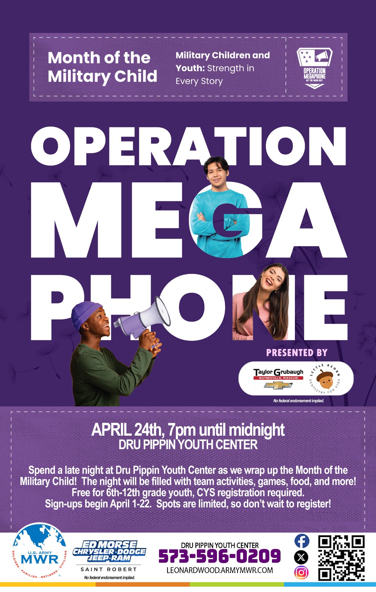 Spend a late night at Dru Pippin Youth Center as we wrap up the Month of the Military Child!