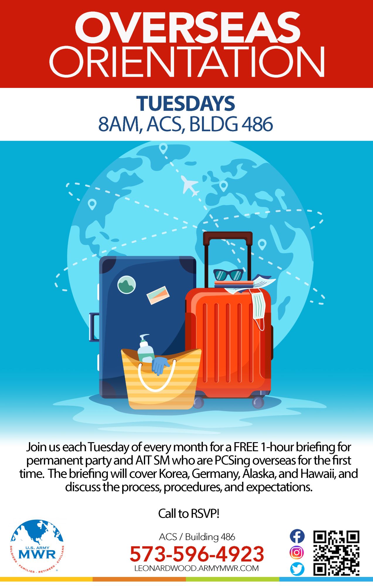 Join us every Tuesday in each month for 1-hour briefings for permanent party and AIT SM who are PCSing overseas for the first time.