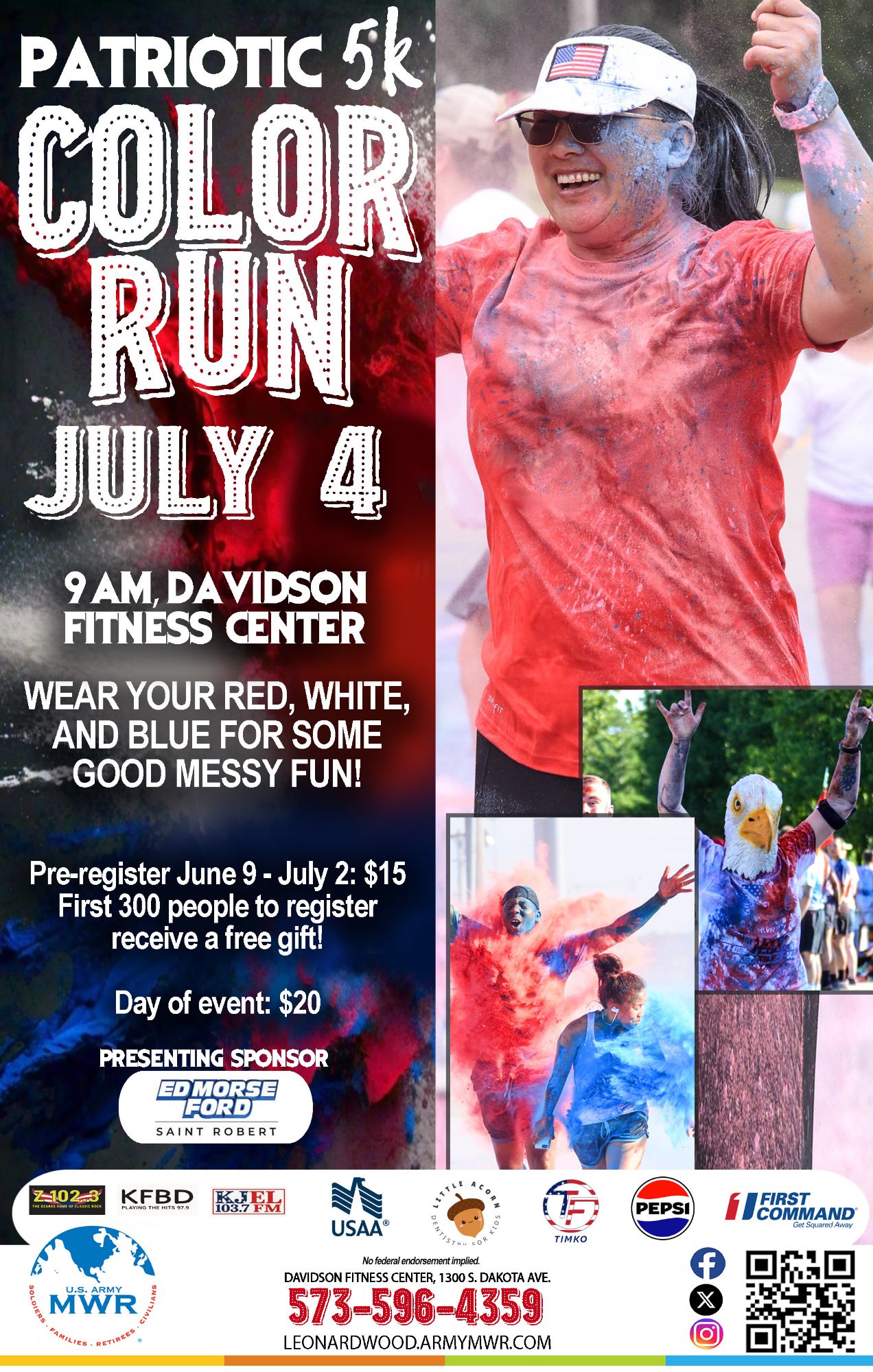 The Patriotic 5K Color Run will be held at Davidson Fitness Center.