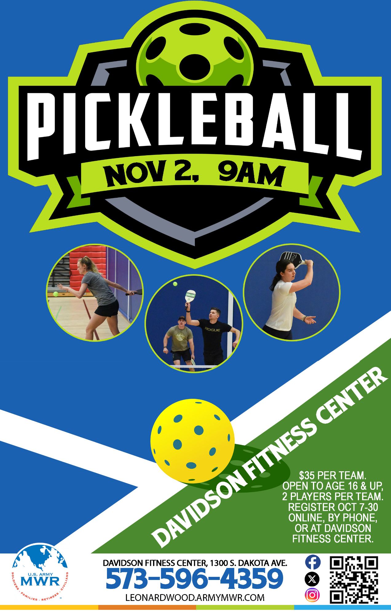 Join us at Davidson Fitness Center for Pickleball! Open to ages 16+.
