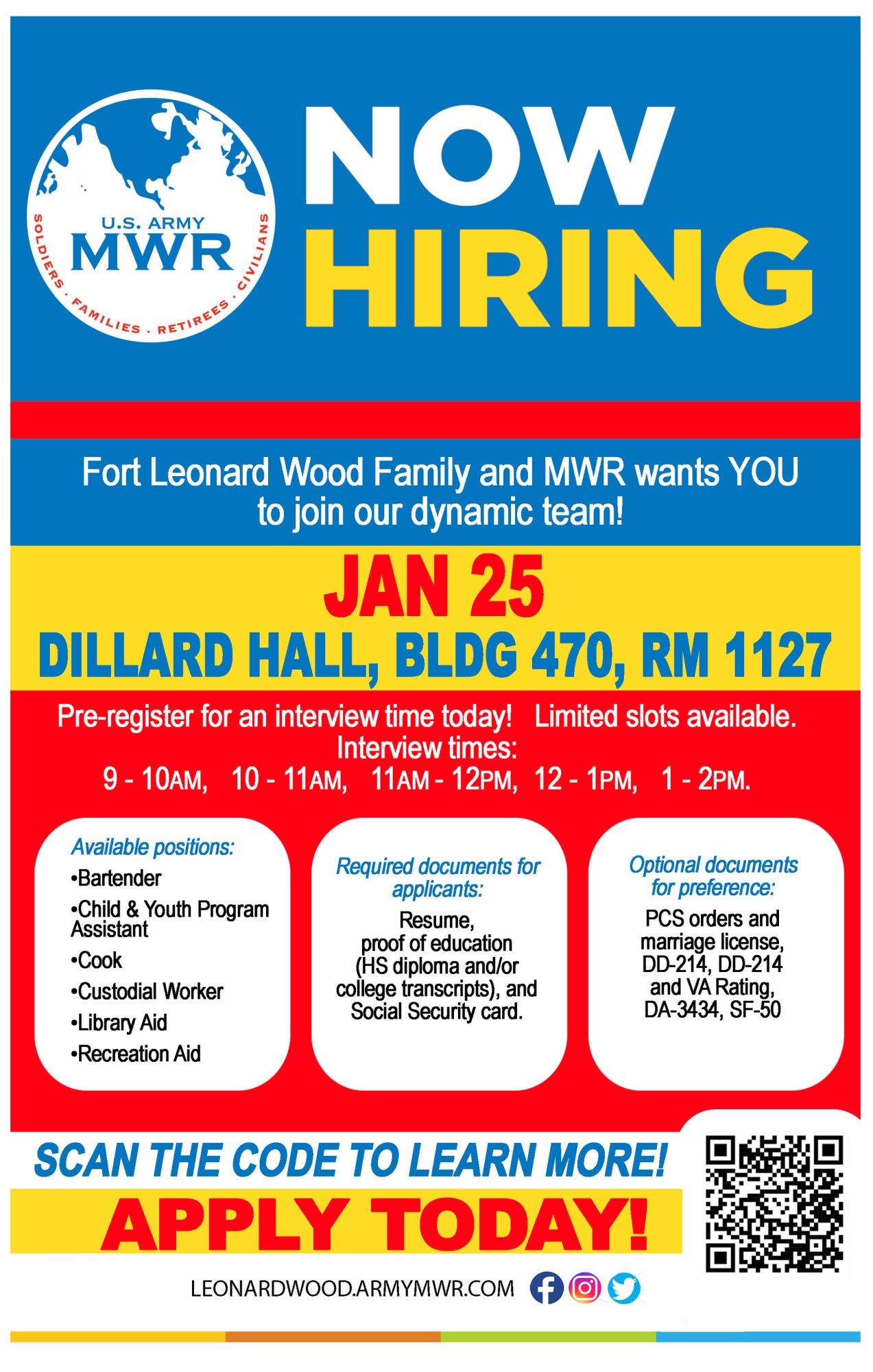 Fort Leonard Wood Family & MWR wants YOU to join our dynamic team!