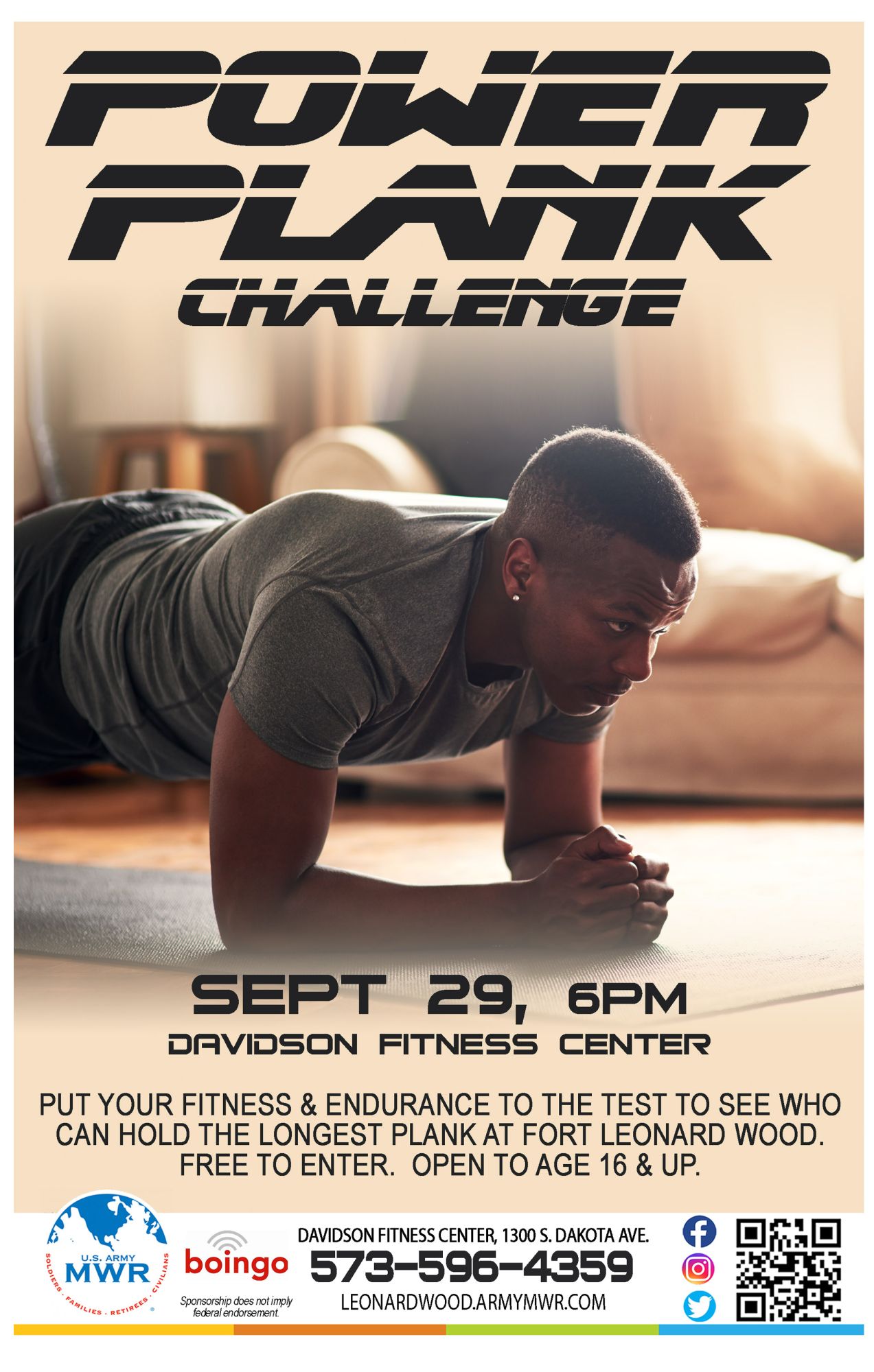 Put your fitness & endurance to the test to see who can hold the longest plank at Fort Leonard Wood!
