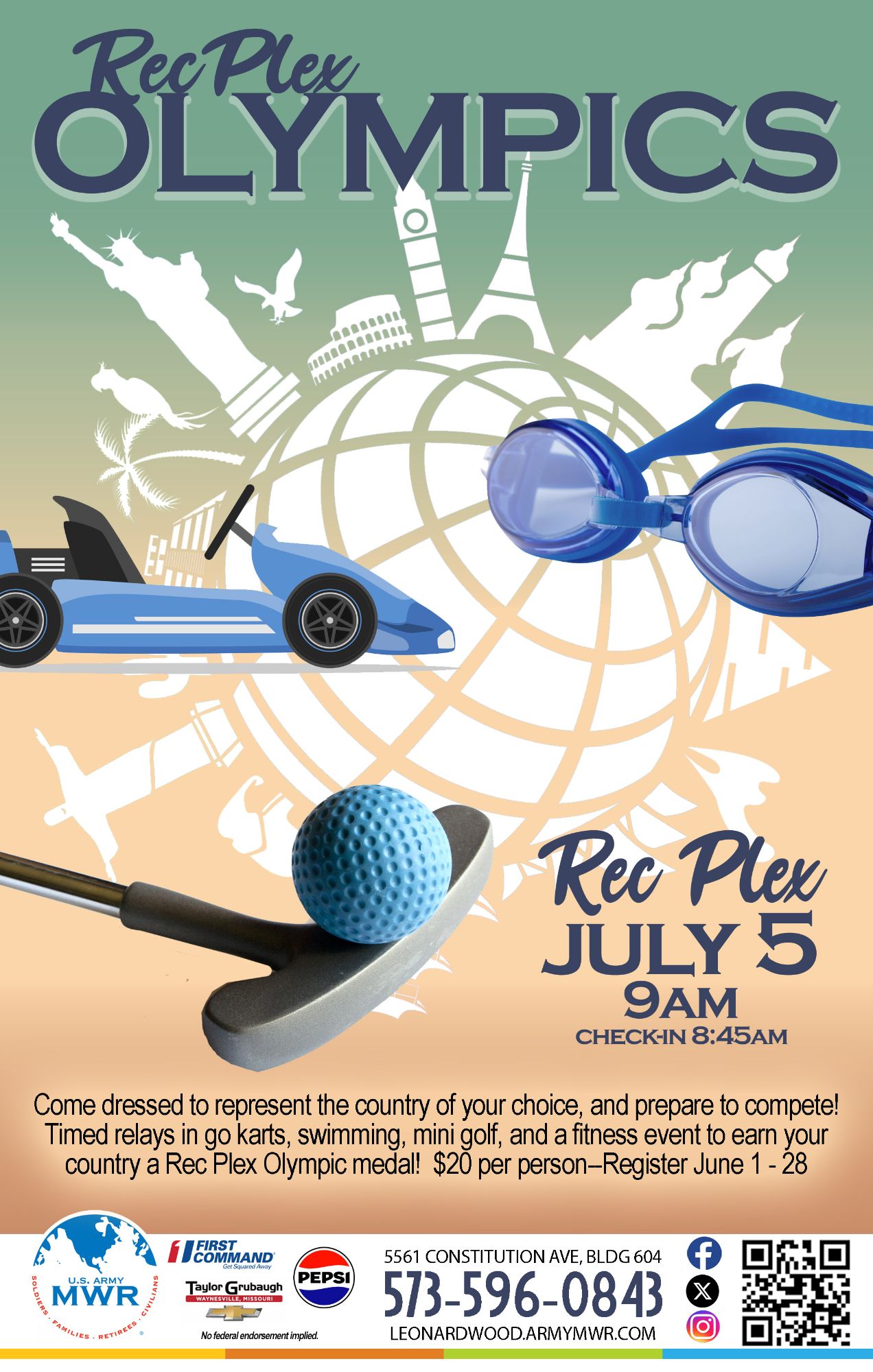 Come dressed to represent your country of choice and prepare to compete in the Rec Plex Olympics!