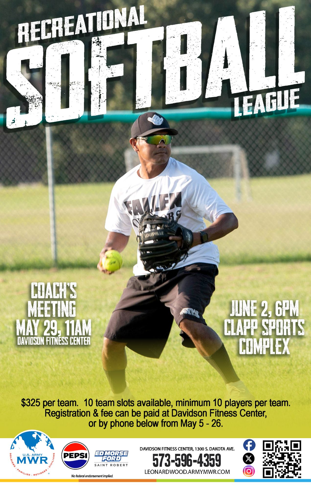 Join us at Clapp Sports Complex for our Recreational Softball League!
