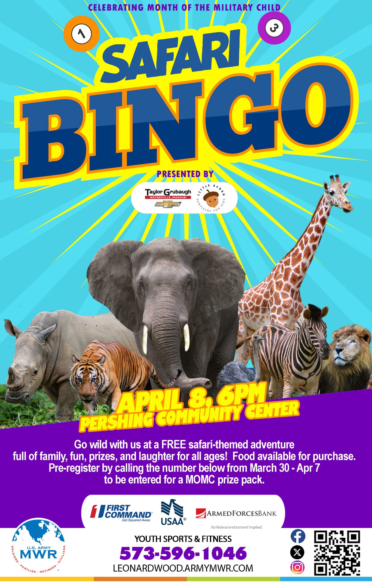 Safari Bingo is held at Pershing Community Center. Food will be available for purchase.