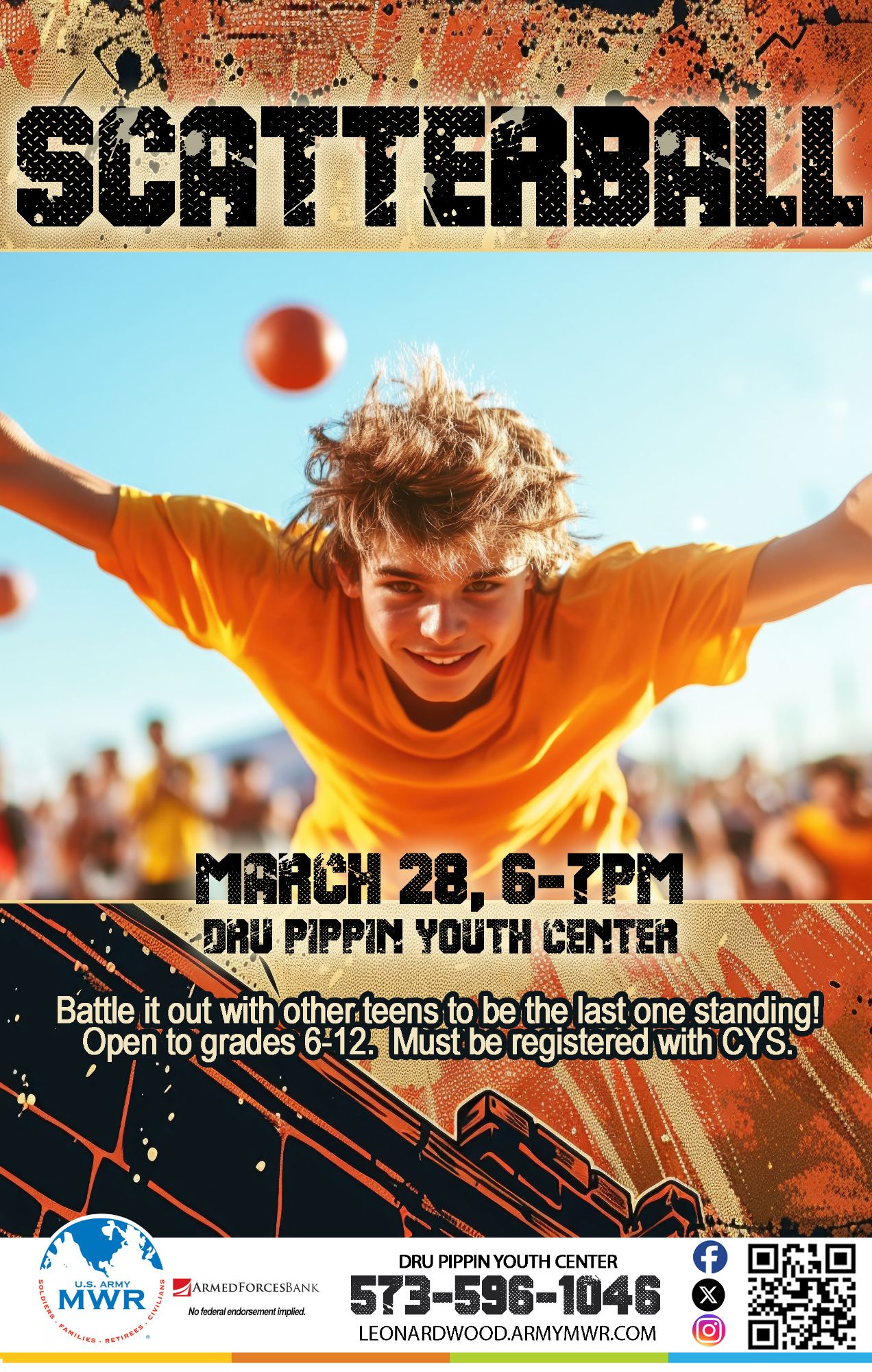 Scatterball is open to youth in Grades 6-12 and will be held at Dru Pippin Youth Center.