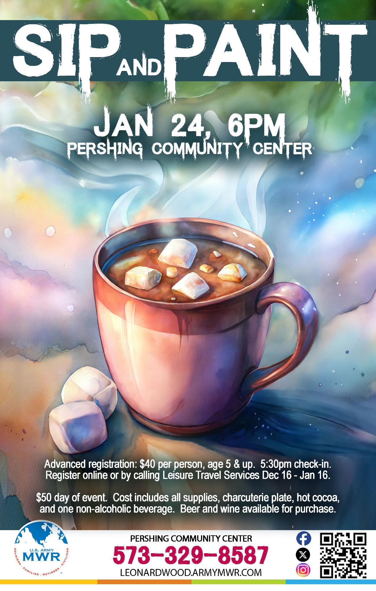 Register Now!Warm up with some hot cocoa and paint with us at Pershing Community Center!