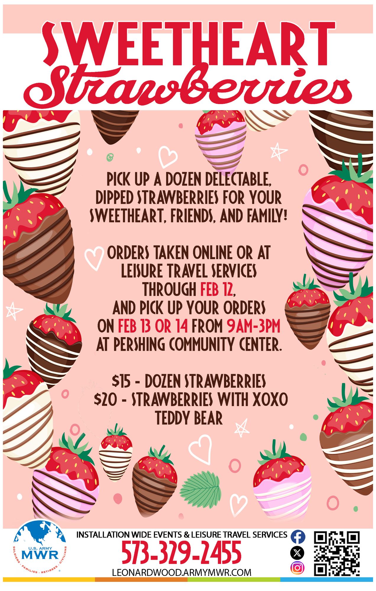 Pick up a dozen delectable, dipped strawberries for your sweetheart, friends, and family!