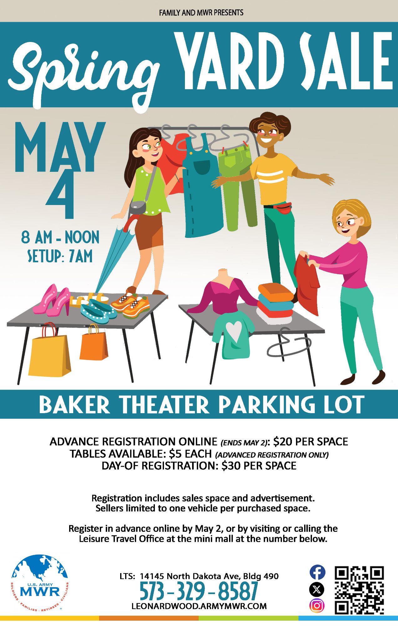 The MWR Spring Yard Sale will be held in the Baker Theater Parking Lot.