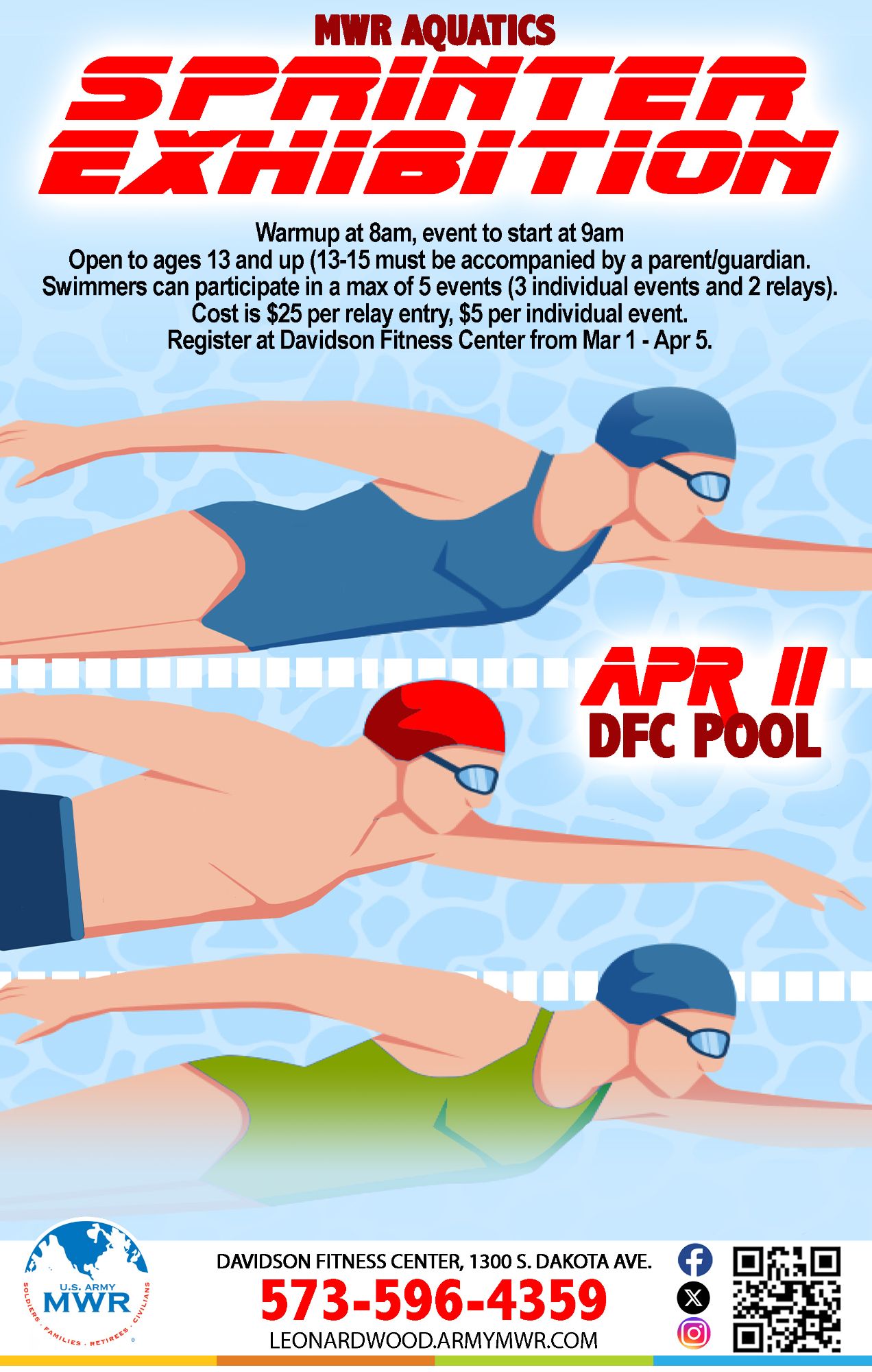 Join MWR Aquatics for their Sprinter Exhibition at DFC Indoor Pool!
