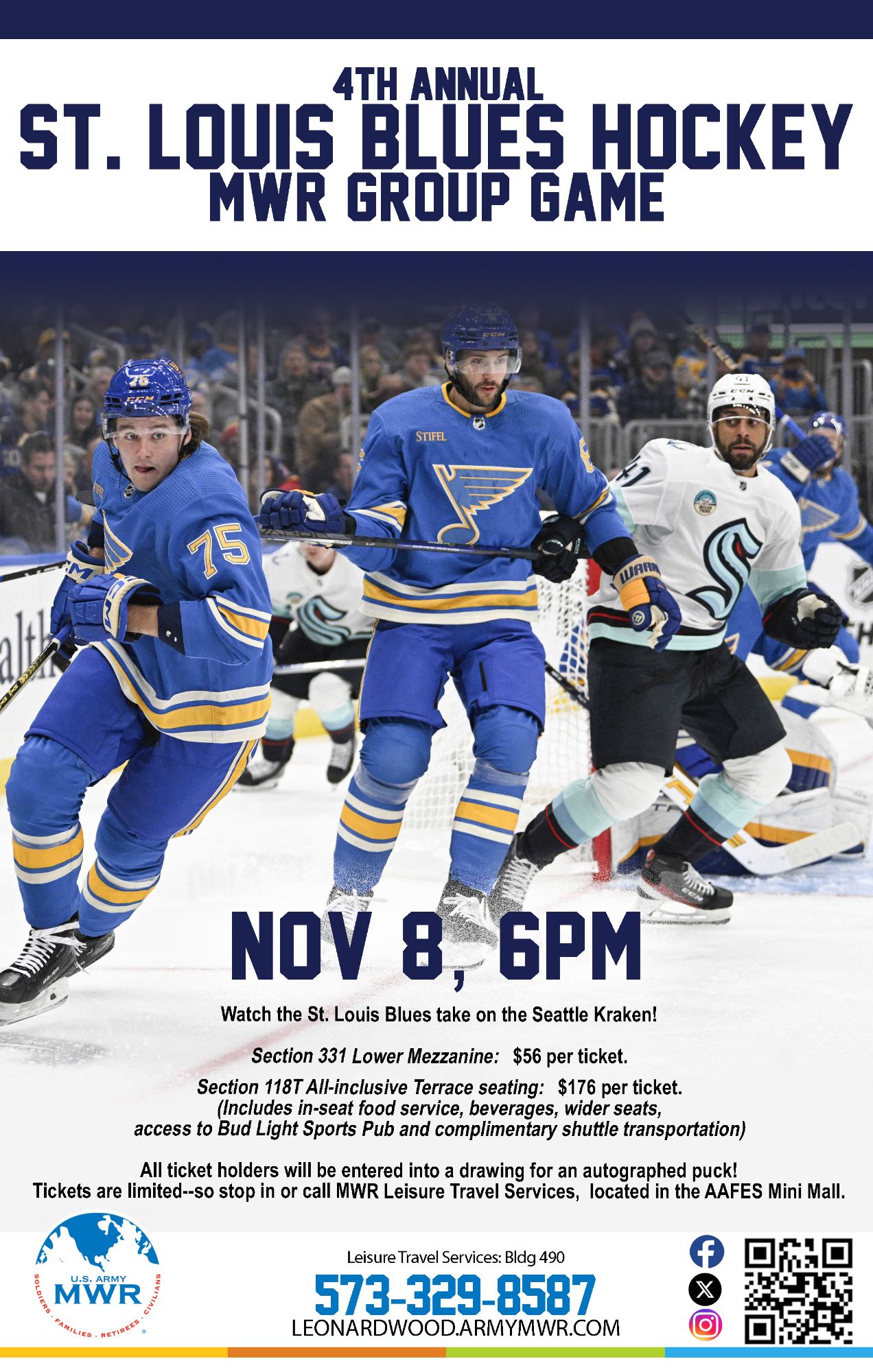 Join Leisure Travel Services for their 4th Annual St. Louis Blues Hockey MWR Group Game.