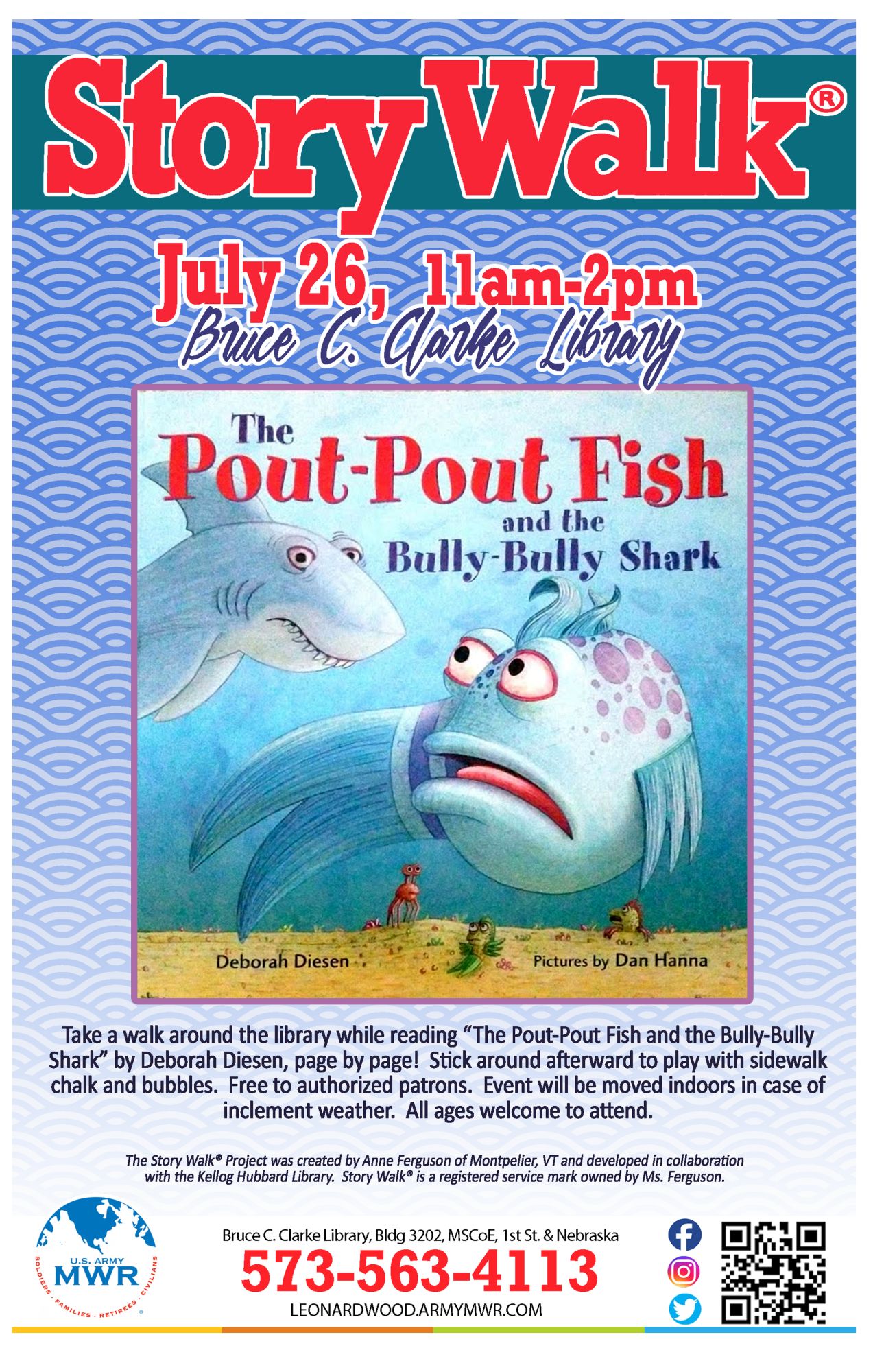 Take a walk around the Bruce C. Clarke Library while reading "The Pout-Pout Fish and the Bully-Bully Shark" by Deborah Diesen page by page!