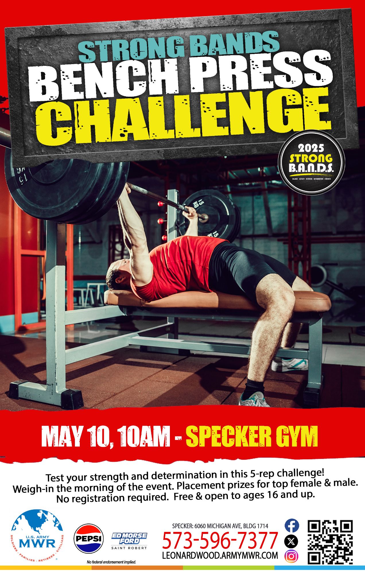 The Strong BANDS Bench Press Challenge will be held at Specker Gym.