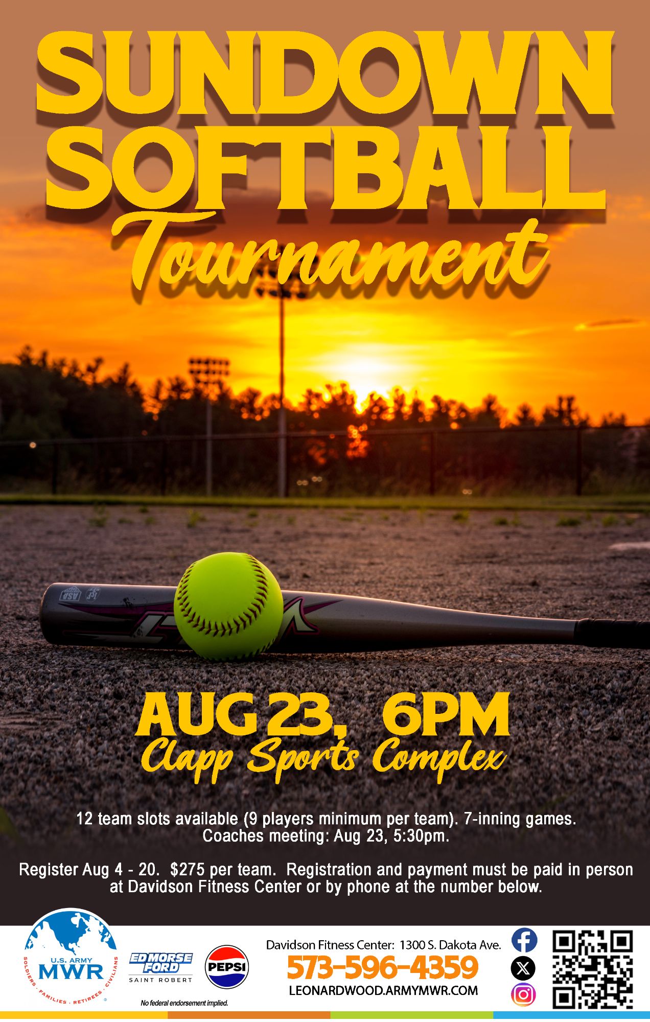 Join us at Clapp Sports Complex for the Sundown Softball Tournament.