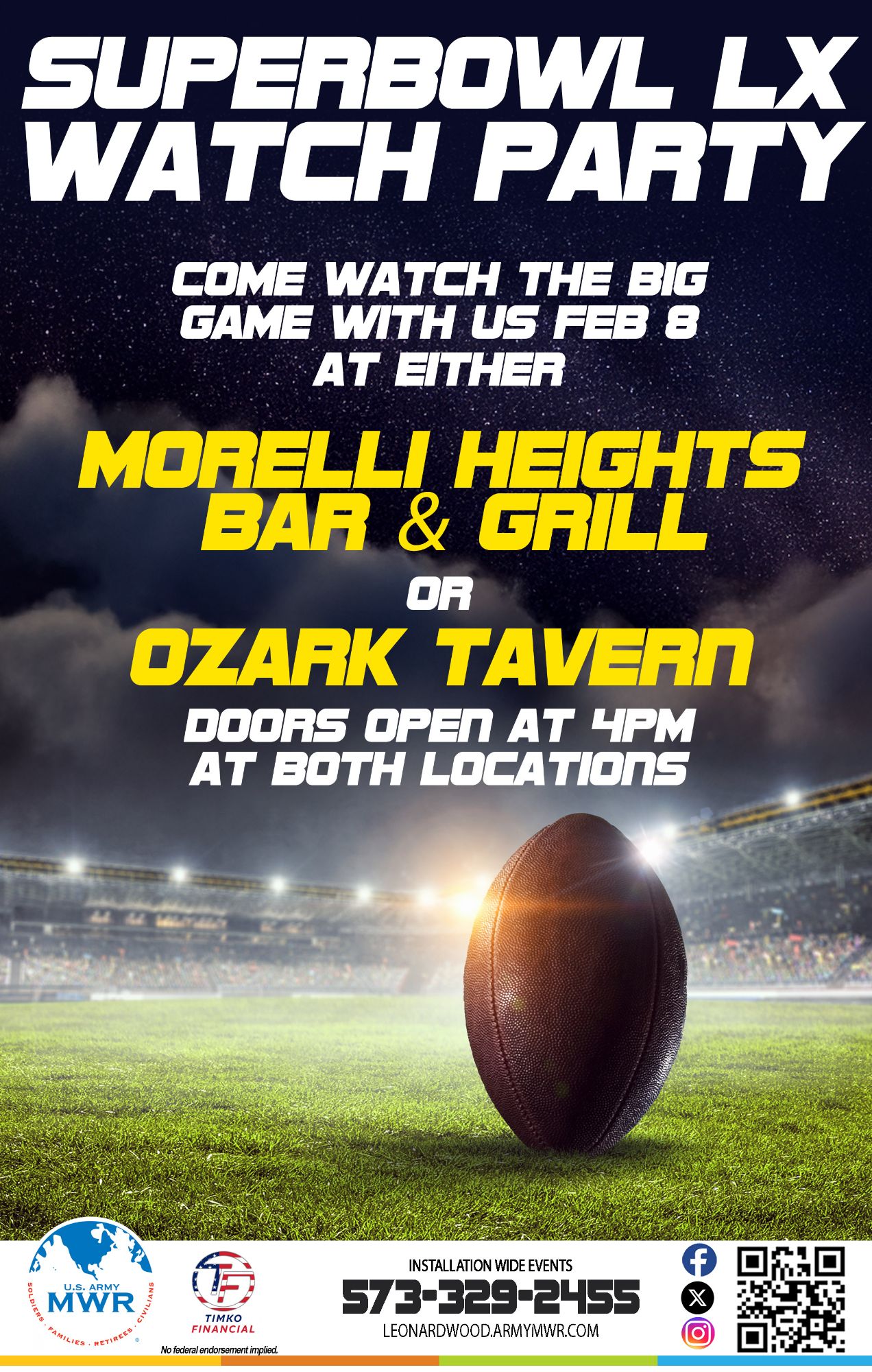 Watch the big game at Morelli Heights Bar & Grill or Ozark Tavern!