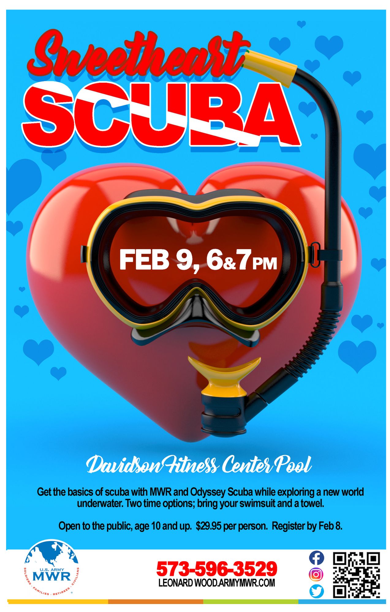 Sweetheart Scuba will be held in the DFC Indoor Pool in two time slots at 6 pm & 7 pm.