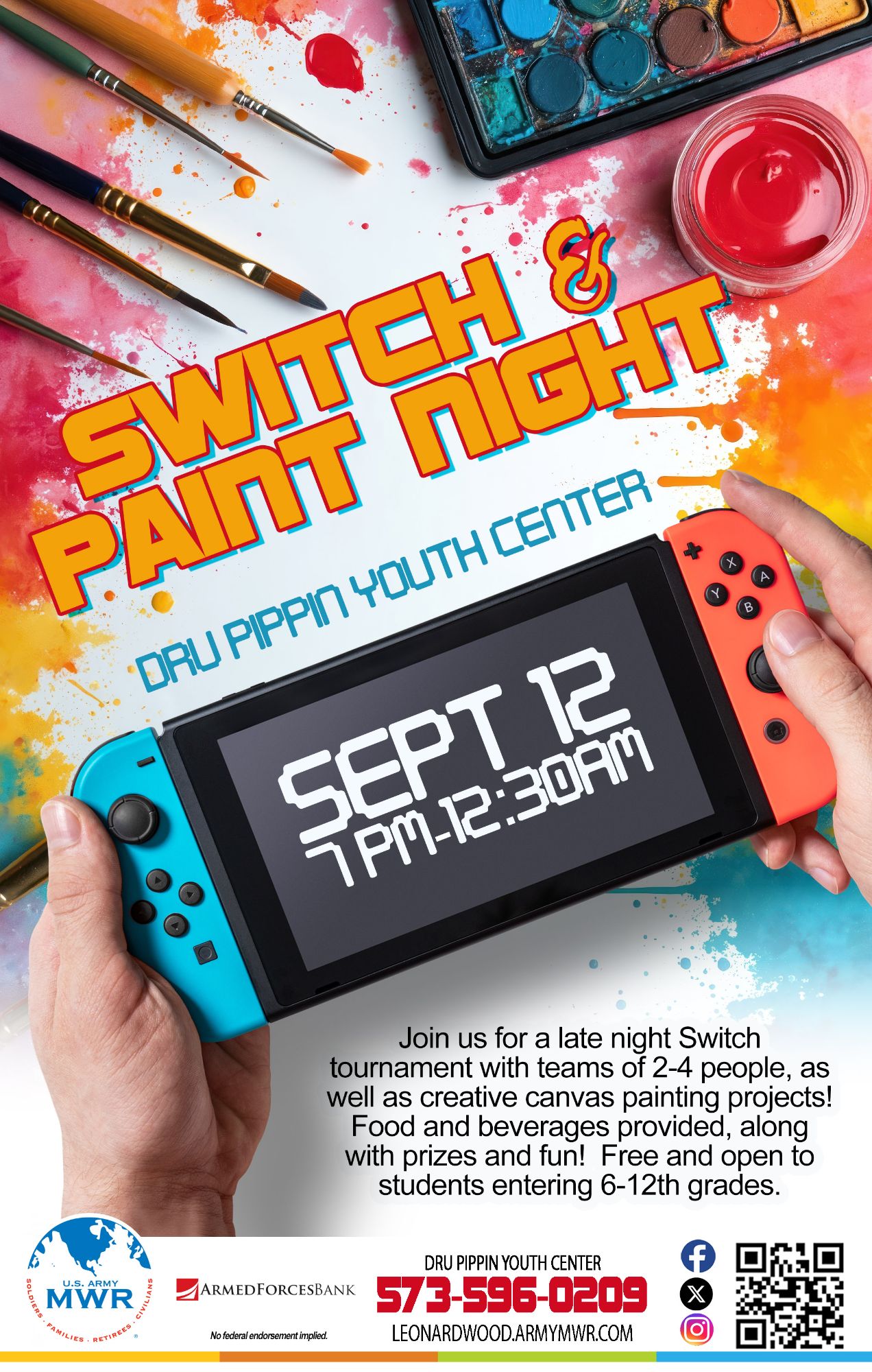 Switch & Paint Night will be held at Dru Pippin Youth Center and is open to youth in Grades 6-12.