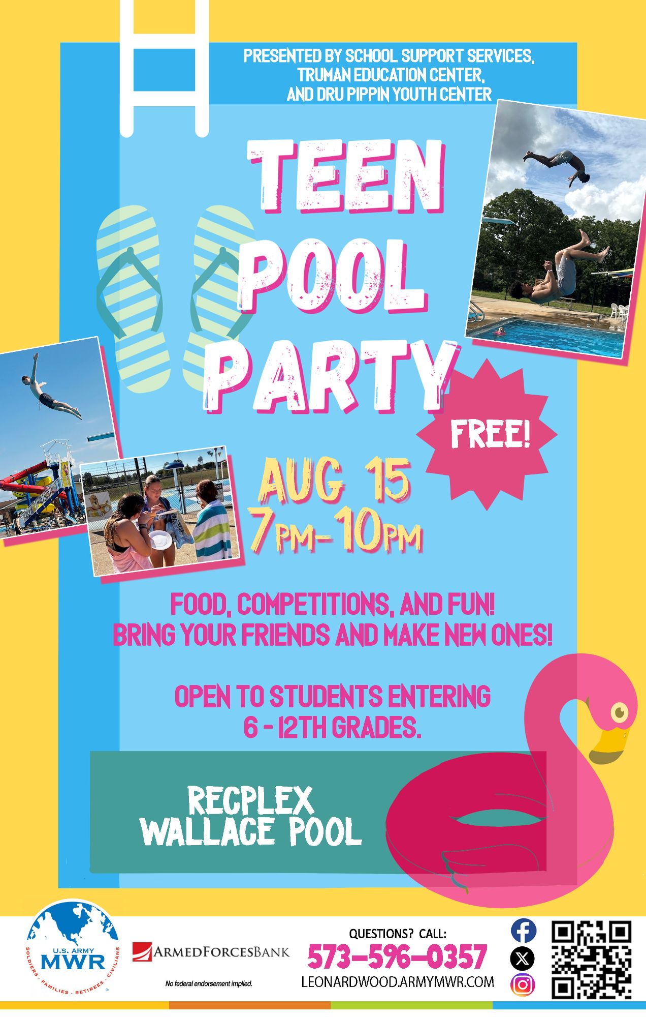 Join us at Wallace Pool at the Rec Plex for our annual Teen Pool Party!