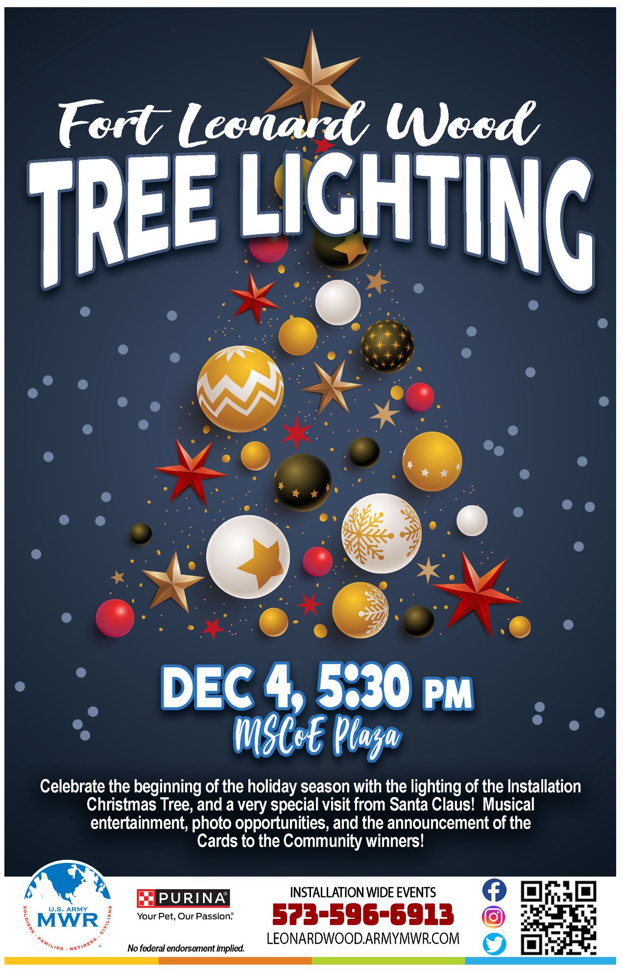 The Fort Leonard Wood Tree Lighting will be held at MSCoE Plaza.