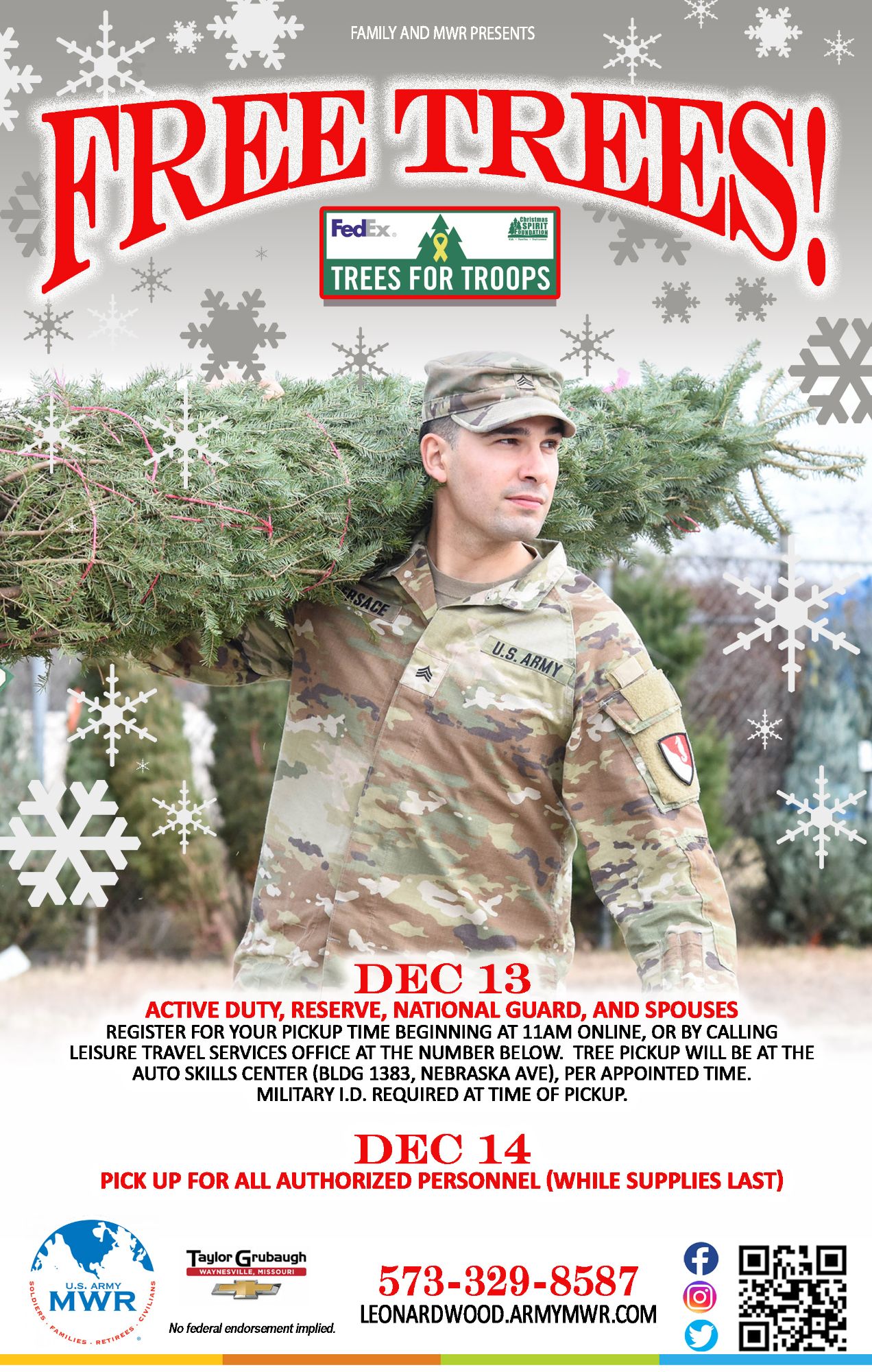 Register Now!Trees for Troops is once again making a stop at Fort Leonard Wood to deliver real trees for the Holidays!