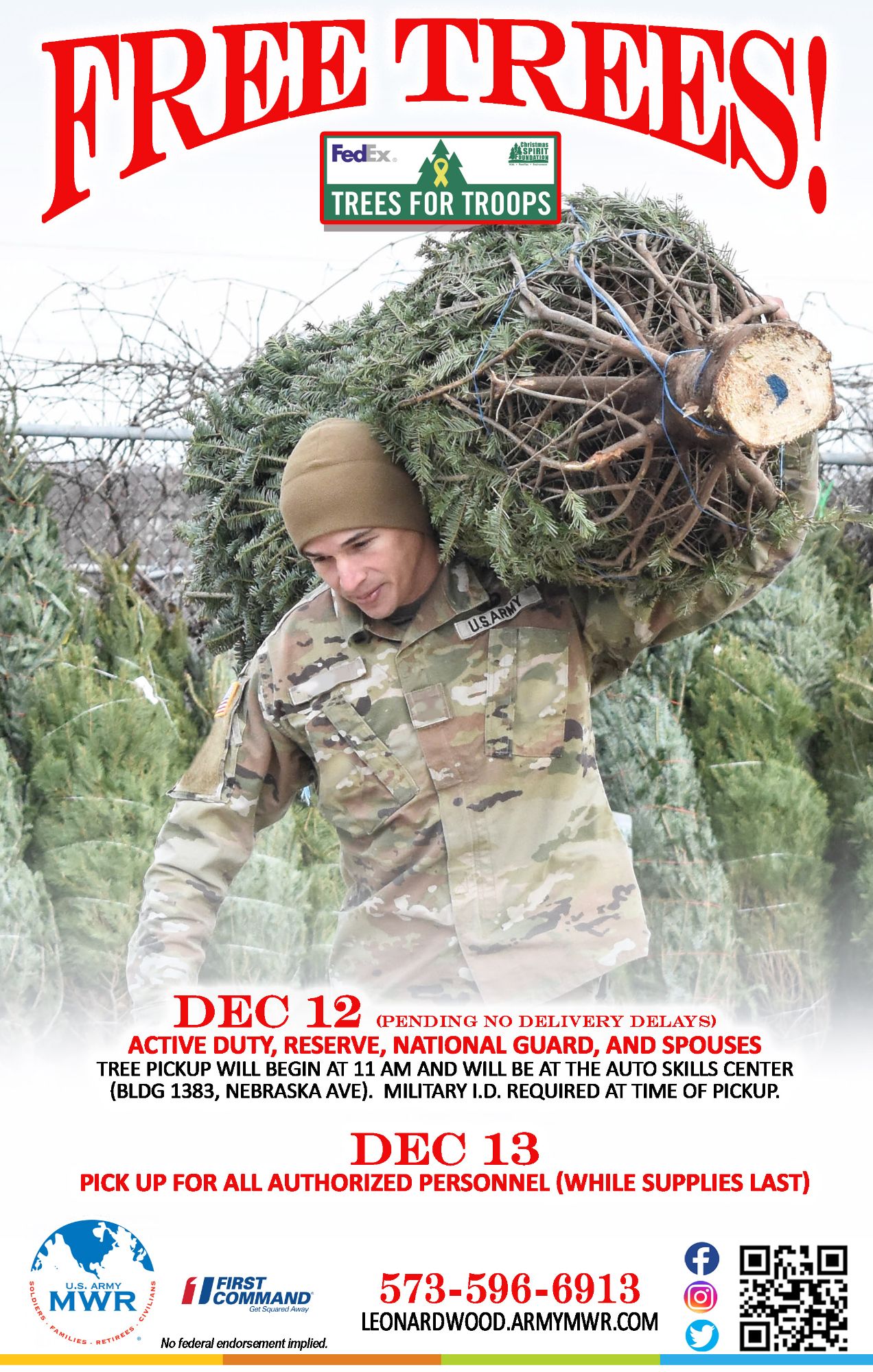 Trees for Troops is once again making a stop at Fort Leonard Wood to deliver real trees for the Holidays!