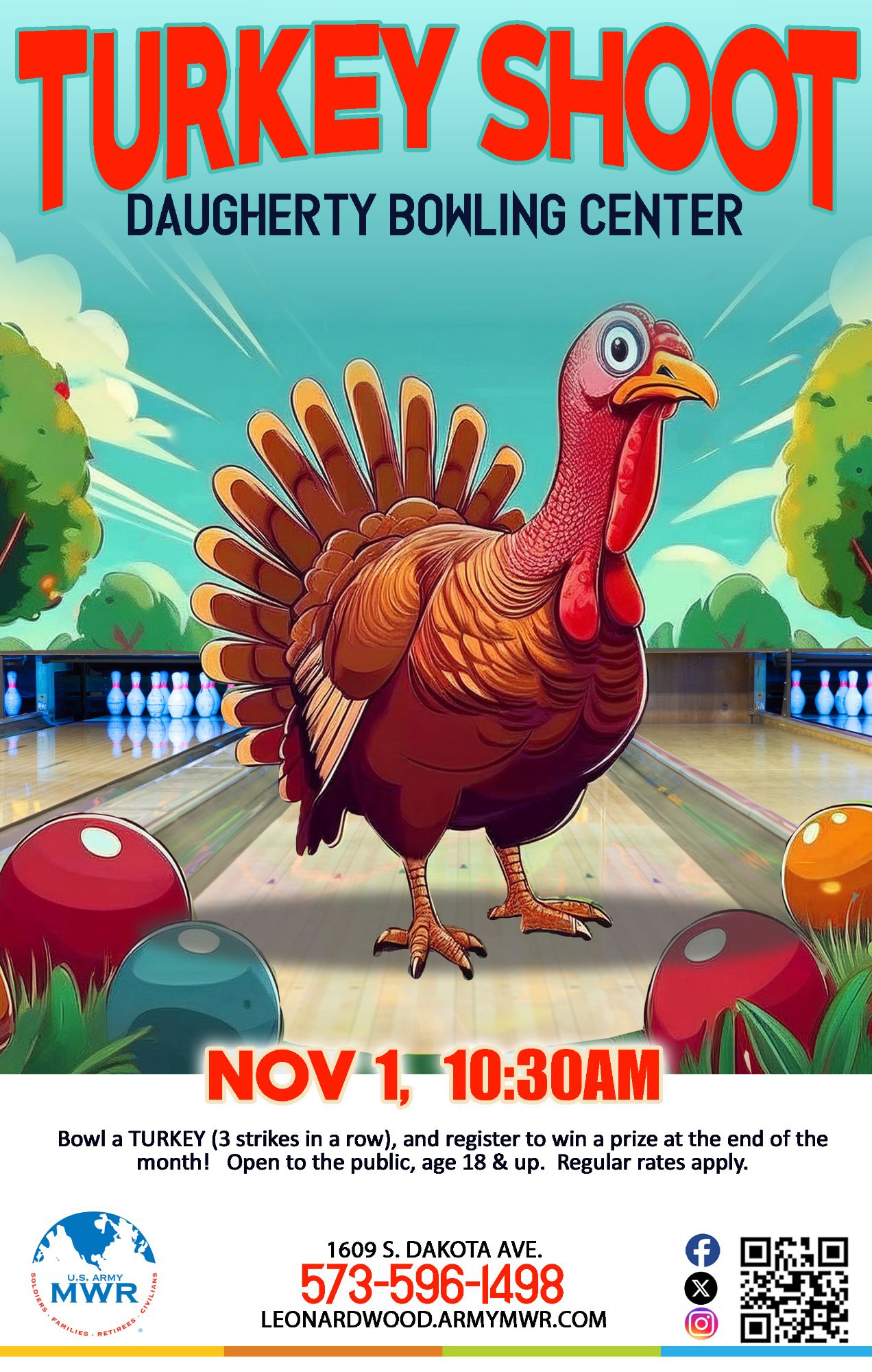 Bowl a Turkey (3 strikes in a row) during the month of November and register to win a prize drawing on 20 November!