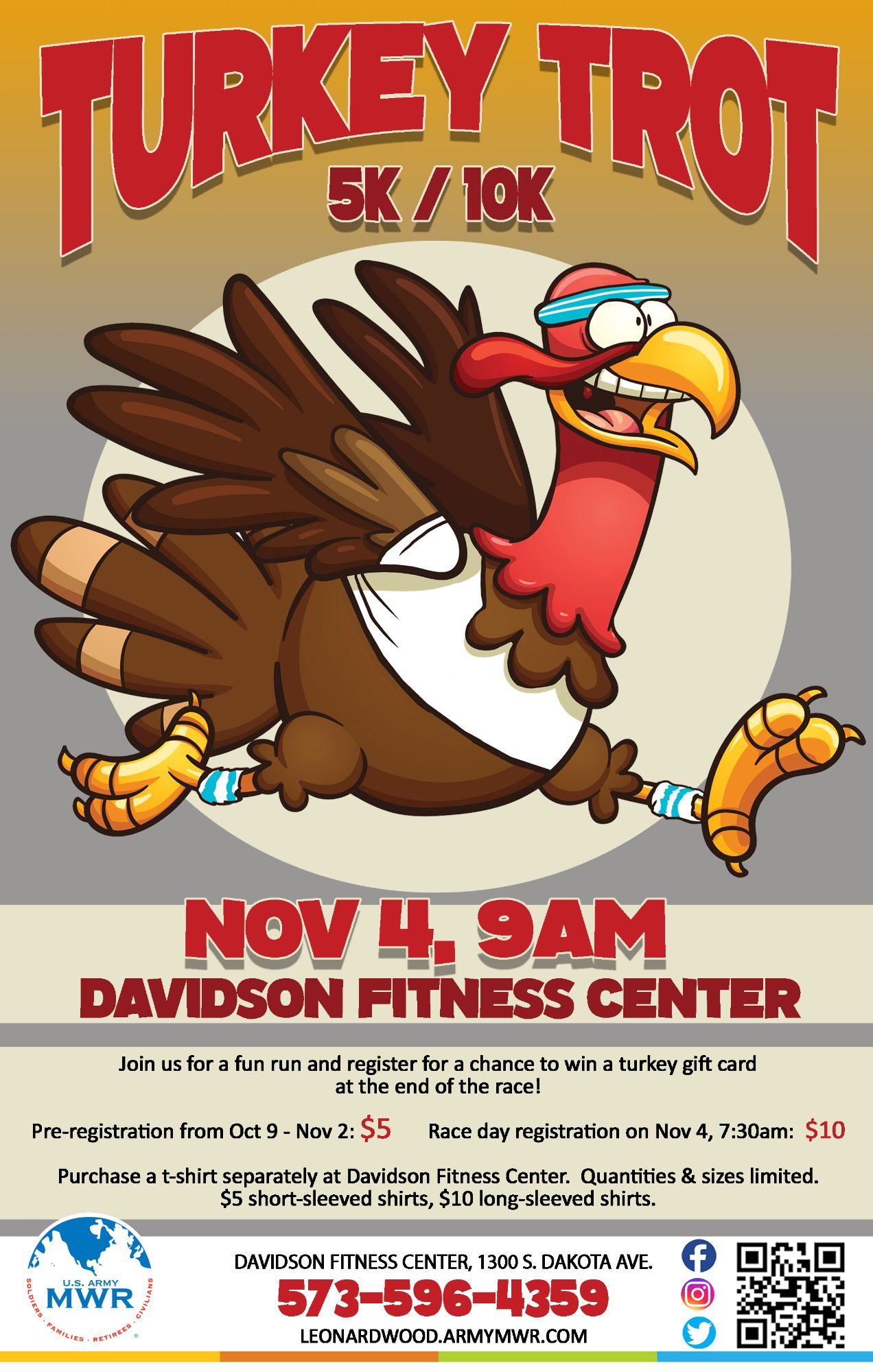 The Turkey Trot 5K / 10K will be held at Davidson Fitness Center.