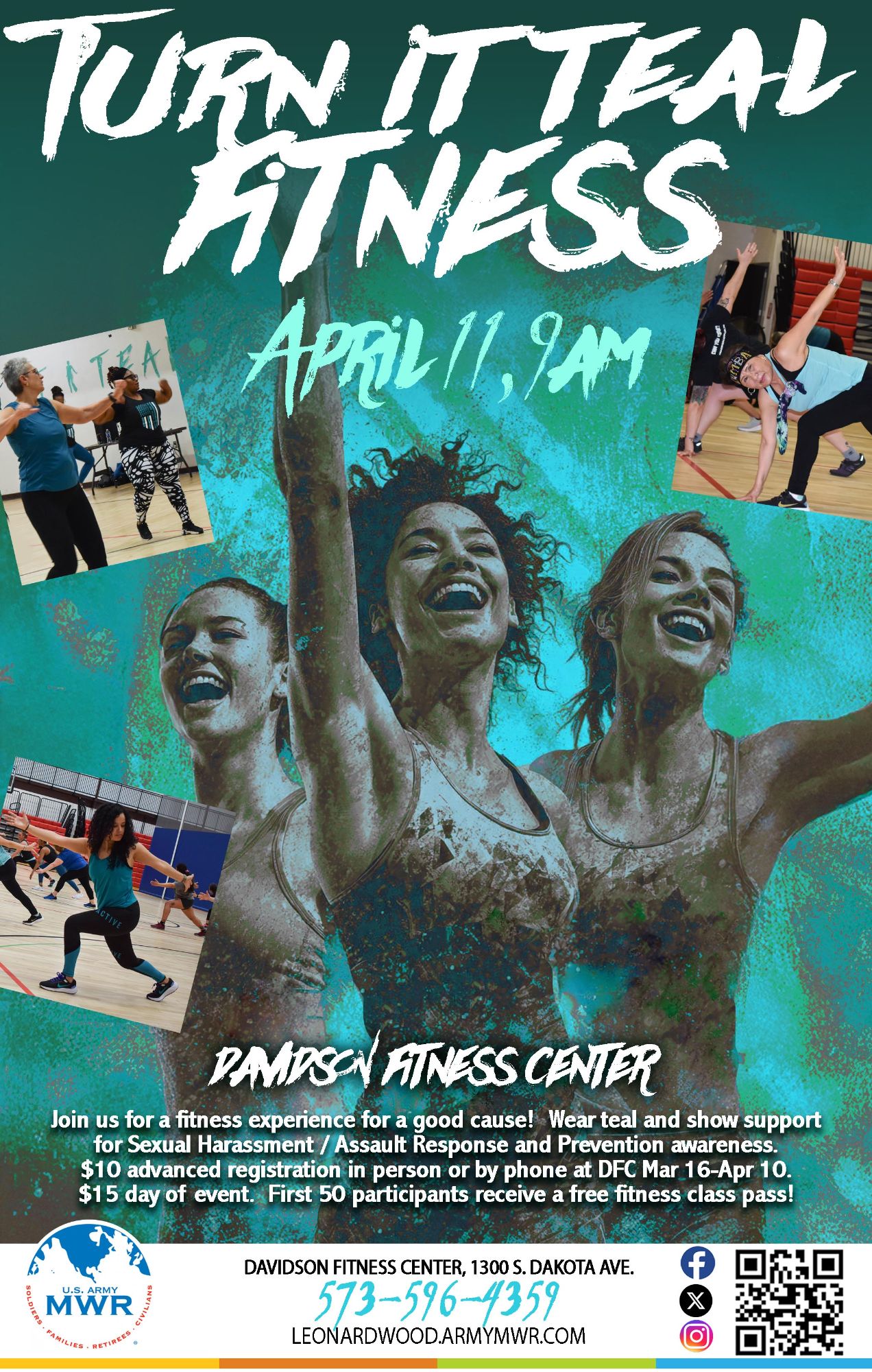 Join us for a fitness experience for a good cause! Wear teal and show support for Sexual Harassment/Assault Response and Prevention Awareness.