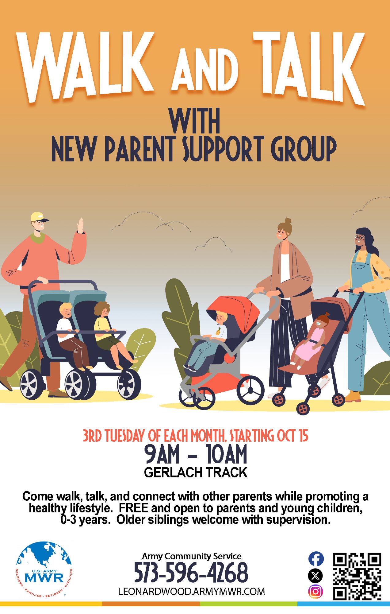 Walk & Talk with New Parent Support Group will be held the 3rd Tuesday of each month at Gerlach Track.