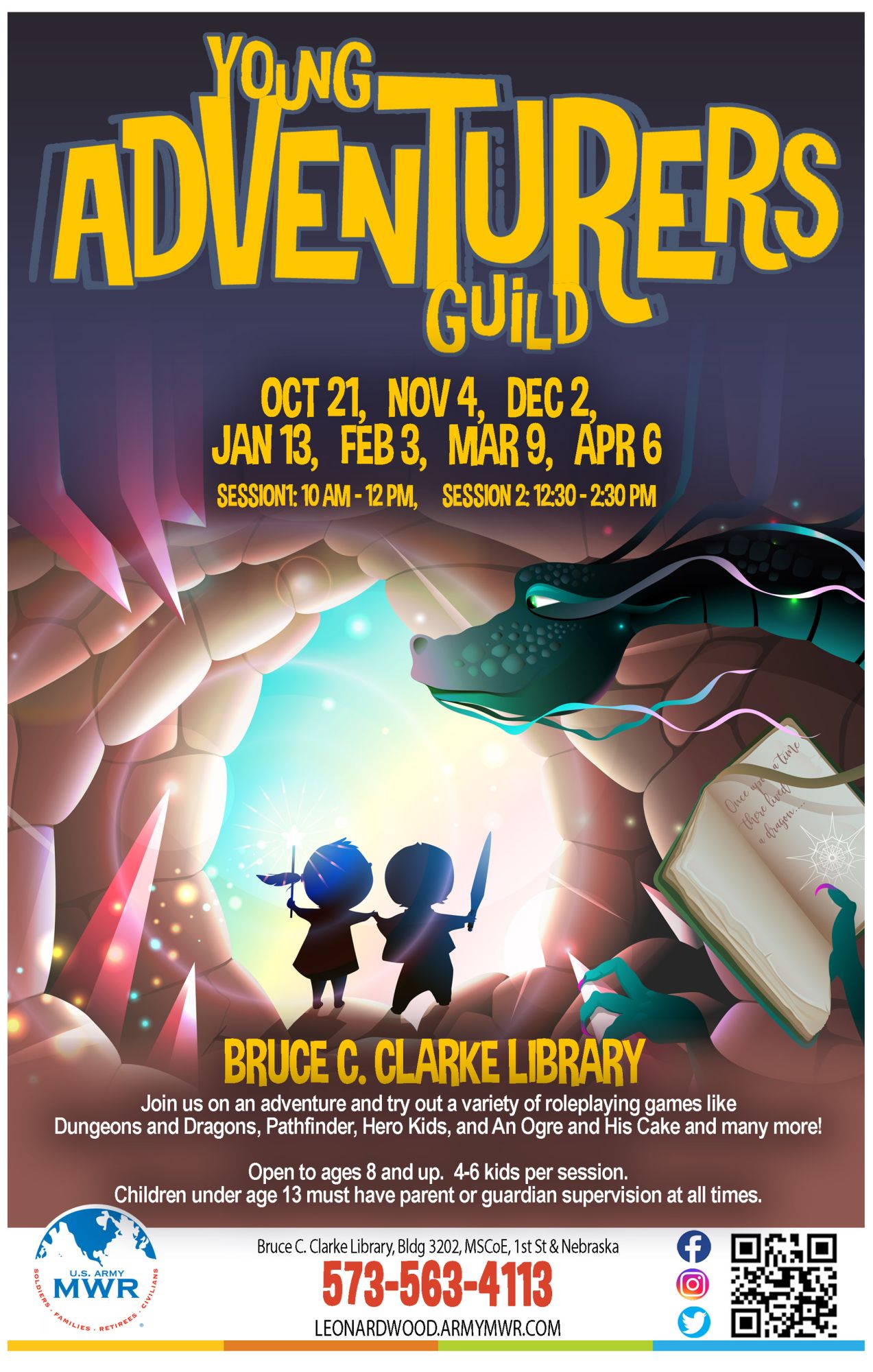 The Young Adventurers Guild will be held at Bruce C. Clarke Library the following dates: