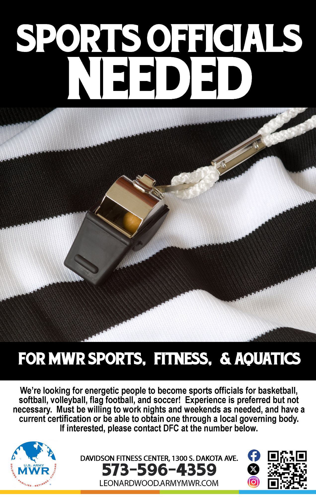 MWR Sports, Fitness, & Aquatics is looking for Sports Officials!