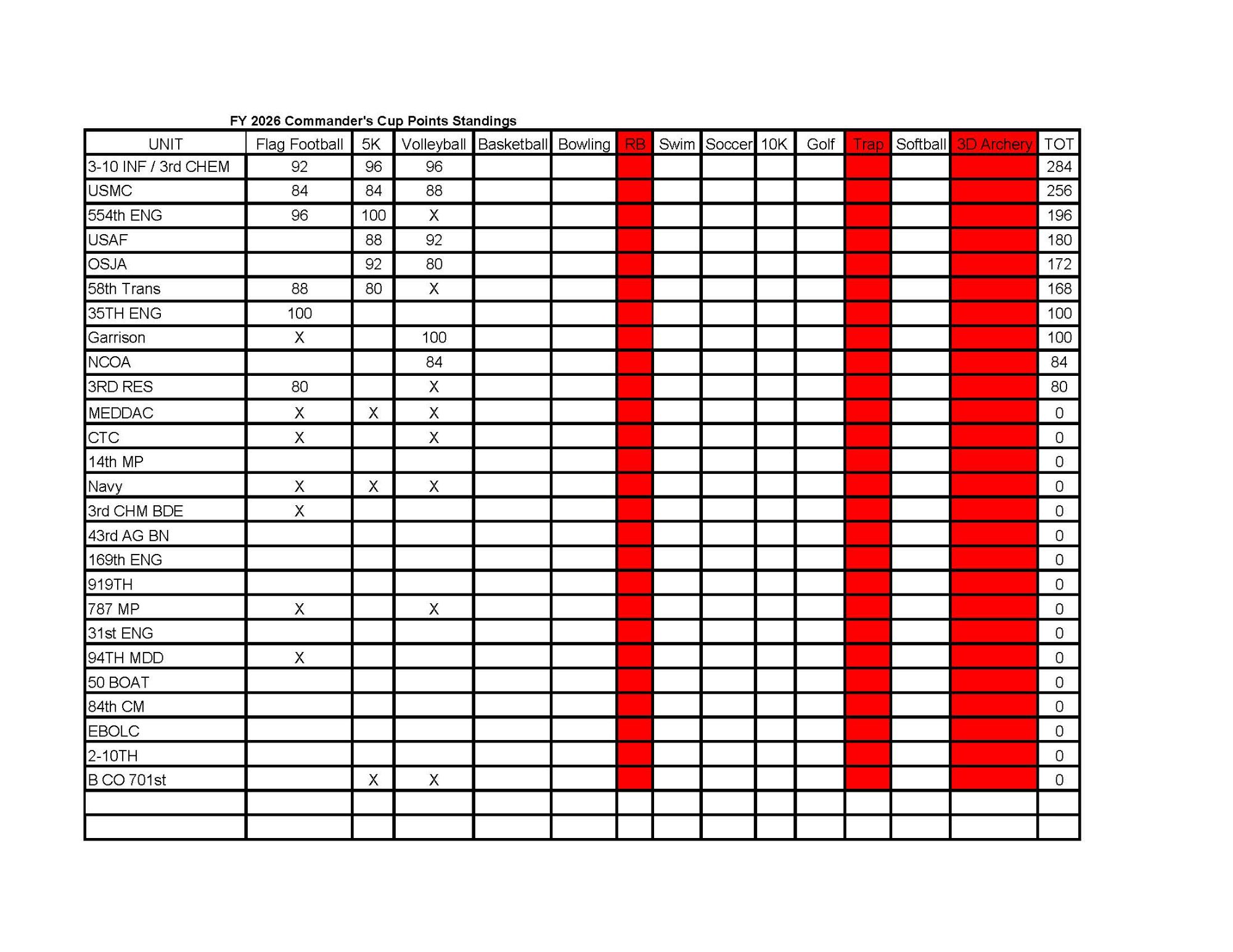 Here are the remaining Commander's Cup Sports scheduled for the 2025-2026 season.