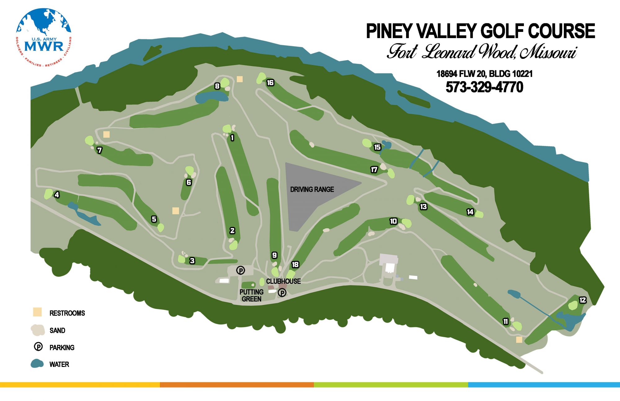 Tee times may be reserved by visiting the Pro Shop or by calling +1 (573)329-4770. Active Duty Military can reserve a tee time up to 5 days in advance. Retired Military and DoD Employees can reserve up to 4 days in advance. All other customers may reserve tee time up to 3 days in advance.